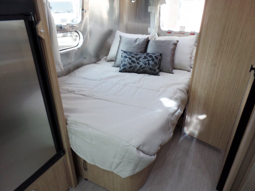 Pillow Top Memory Foam Mattress • Quilted Bedspread w/Reverse Sham w/Decorative Throw Pillows • (2) Regular Bed Pillows • Call Colonial Airstream 1-800-265-9019 • Removable Under Bed Storage Bins • Sleeping Capacities: 2 – 4 (19CB; 20FB); 2 – 5 (23CB; 25FB, 25RB 27FB) ; 2 – 6 (28RB , & 30RB); 8 (30FB Bunk) • 30 FB Bunk Only Has Corner Double Lower Bed 54?X 76? w/pillowtop memory foam mattress & single upper bunk 30?X78? w/quilted mattress /C.S. Wardrobe Sleeping Capacities: 2 – 4 (19CB, 20FB, & 23FB); 2 -5 (23CB, 25FB, 25RB – 27FB); 2 -6 (28RB & 30RB); 2- 8 (30 Bunk).