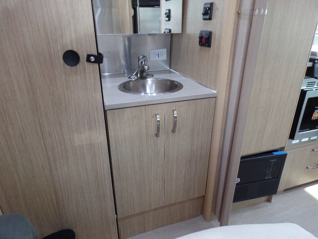 Laminated Galley Top • Sink Cover(s) • S.S. Single Bowl 18” Sink (Double Bowl on 20FB & 23FB) (15.75? Rectangular Bowl on 19CB) • Faucet w/Separate Sprayer • Aluminum Insert on Refrigerator • Pantry Storage (N/A 28RB) • Bi-Fold Stainless Steel Range Cover • Overhead Rooflocker w/Radius Doors • Cutlery Drawer w/Hardwood Maple Drawer Organizer • Filtered Cold Water.