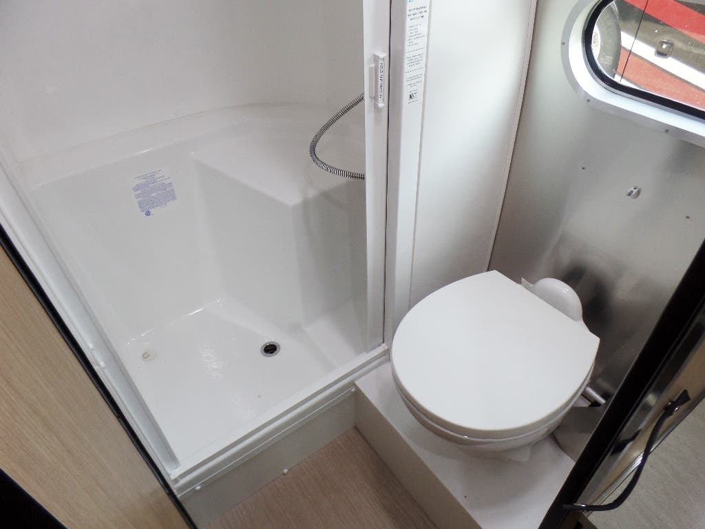 Towel Bar & Ring • Hinged Bath Door (20FB & 23FB w/Window) • Retractable Clothes Line in Shower • Stainless Steel Round Lavy Sink • China Toilet • Mirrored Medicine Cabinet (N/A 23FB & 30FB & 30RB).