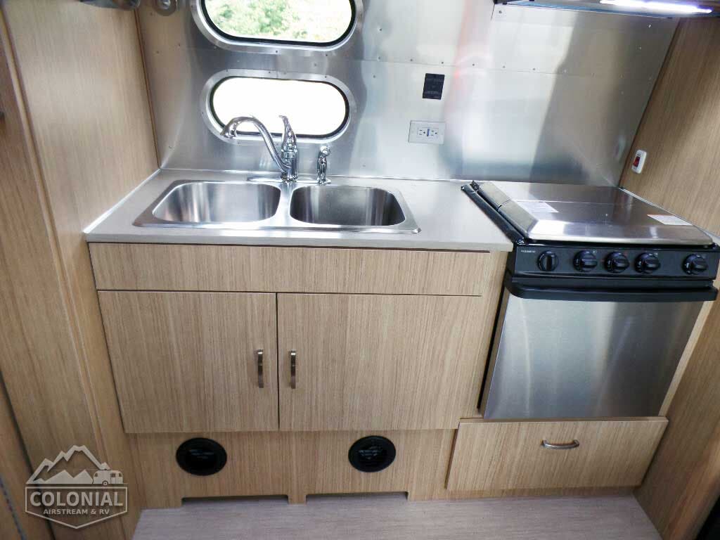 13,500 BTU Air Conditioner w/Heat Pump & Electronic Controls (19CB, 20FB, 23CB & 23FB) • 15,000 BTU Ducted Air Conditioning System W/Heat Pump & Electronic Control (25RB, 25FB, 27FB, 28RB ), Bedroom 2nd A/C for 30RB & 30FB • Comfort Control Center • Furnace w/Electronic Ignition (16,000 BTU for 19CB; 18,000 BTU for 20FB & 23’FB; 25,000 BTU for 23CB; 25FB, 25RB – 27FB; & 30,000 BTU for 28RB, 30FB & 30RB) • 3-Burner Cooktop w/Oven w/Black Top & Stainless Steel Door • Microwave (23′, 25RB, 30′) • Stainless Steel Range Hood w/Vent & Light • Call Colonial Airstream 1-800-265-9019 • 2 Fantastic Vents w/Thermostat & Rain Sensor • 12 volt Bath Exhaust Fan (N/A 23’FB) • 2-Way Refrigerator (4 cu. ft. refrigerator in 19CB-20FB; 5 cu. ft.refrigerator in 23′; 7 cu.ft.refrigerator in 25′ – 28′ Models; 8 cu. ft.refrigerator in all 30′ Models) • Probeless Tank Monitoring System (Wall Mounted) • 6 Gallon LP/Electric Water Heater – XT Series (Equivalent Output of a 9 Gallon Water Heater) • Fire Extinguisher • LP, Smoke & Carbon Monoxide Detectors.