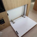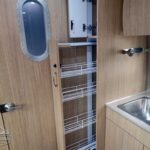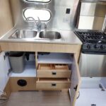 Laminated Galley Top • Sink Cover(s) • S.S. Single Bowl 18” Sink (Double Bowl on 20FB & 23FB) (15.75″ Rectangular Bowl on 19CB) • Faucet w/Separate Sprayer • Aluminum Insert on Refrigerator • Pantry Storage (N/A 28RB) • Bi-Fold Stainless Steel Range Cover • Overhead Rooflocker w/Radius Doors • Cutlery Drawer w/Hardwood Maple Drawer Organizer • Filtered Cold Water.