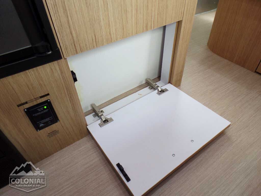 2 Deep Cycle Coach Group 24 Batteries • 7-Way Trailer Cord w/Junction Box • 110volt AC/12volt DC Power Center w/55 amp Converter and Multi-Stage Battery Charger • 12 volt ATC Fuses • Interior LED Lighting • Directional LED Reading Lights • 120 volt Exterior Outlet • Electronic Battery Disconnect • GFI Protection for Bath, Galley & Exterior Outlet • Exterior LED Lighting Package Includes: Dump Valve, Compartment, Area & Step Light • Water Pump Switch at Galley • Solar Prewire W/Roof-Top Plugs & Plug For Portable Solar at Front Trailer A-Frame • Call Colonial Airstream 1-800-265-9019 • Dimmer Switches (2) – Main Ceiling & Bedroom Lights • Remote Generator Ready (25′ – 28′) • 30 amp Service Detachable Power Cord (19C – 28′) 50Amp 30′ • 3 USB Charge Stations •1000 Watt Inverter.