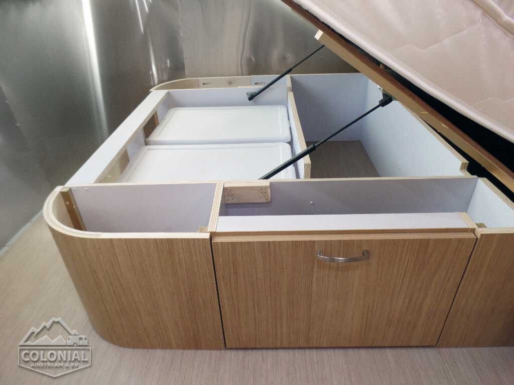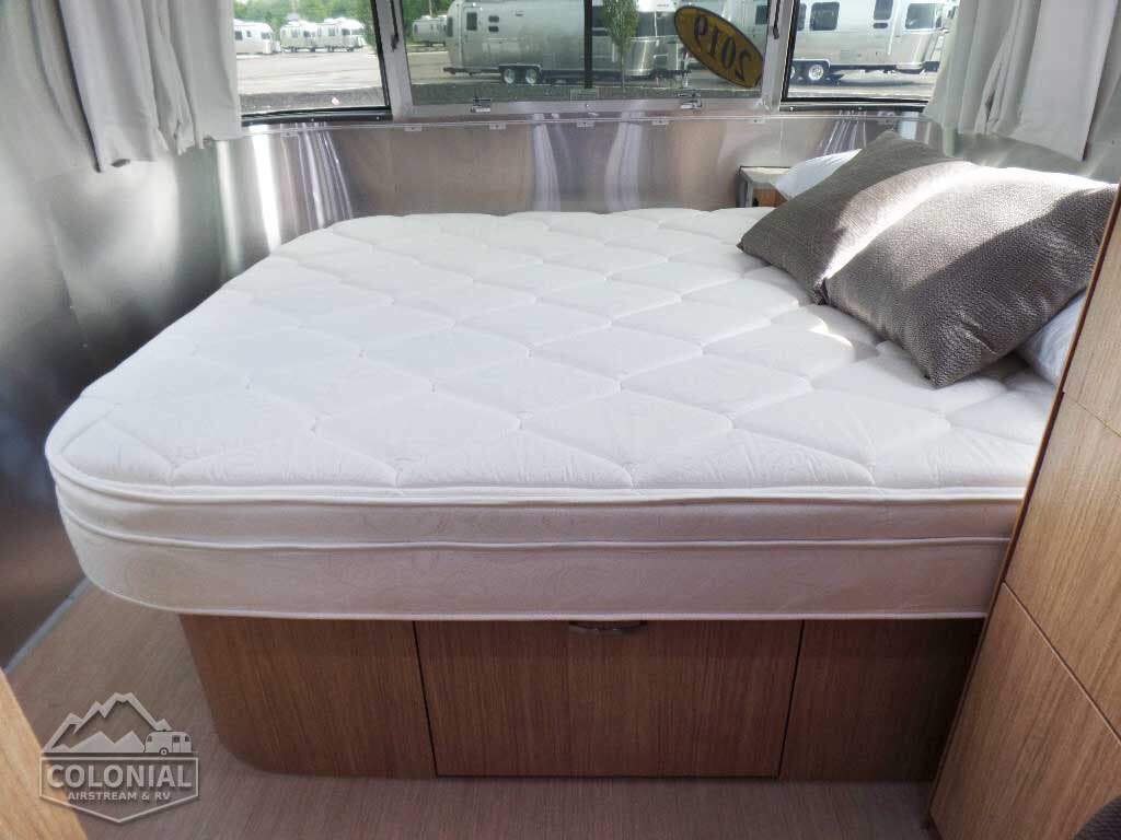 Pillow Top Memory Foam Mattress • Quilted Bedspread w/Reverse Sham w/Decorative Throw Pillows • (2) Regular Bed Pillows • Call Colonial Airstream 1-800-265-9019 • Removable Under Bed Storage Bins • Sleeping Capacities: 2 – 4 (19CB; 20FB); 2 – 5 (23CB; 25FB, 25RB 27FB) ; 2 – 6 (28RB , & 30RB); 8 (30FB Bunk) • 30 FB Bunk Only Has Corner Double Lower Bed 54″X 76″ w/pillowtop memory foam mattress & single upper bunk 30″X78″ w/quilted mattress /C.S. Wardrobe Sleeping Capacities: 2 – 4 (19CB, 20FB, & 23FB); 2 -5 (23CB, 25FB, 25RB – 27FB); 2 -6 (28RB & 30RB); 2- 8 (30 Bunk).
