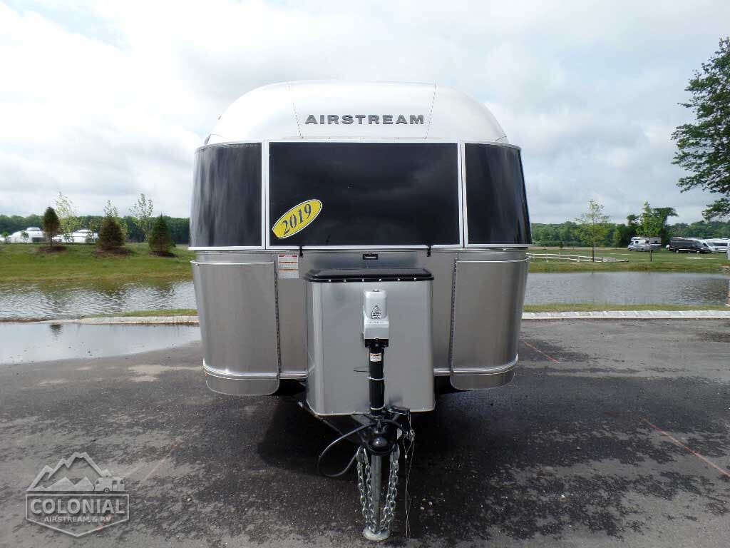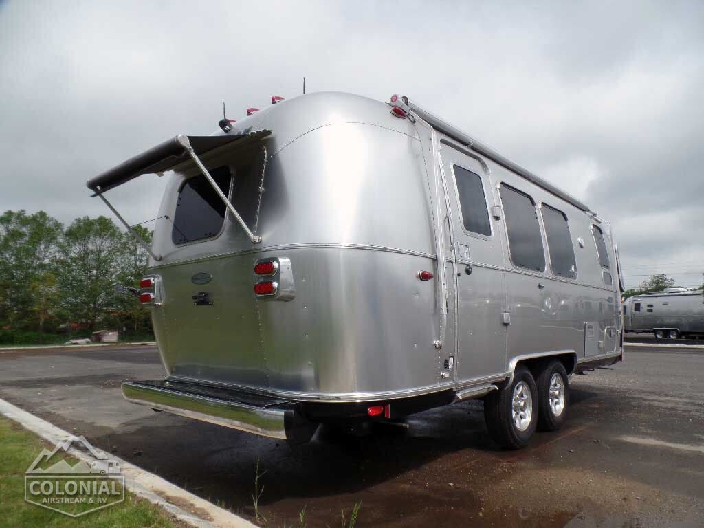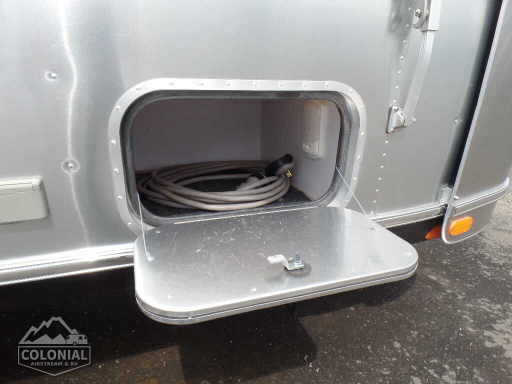 Bright Aluminum Finish / White Aluminum Finish on Roof • Polished Rear Bumper w/Storage • Flying Cloud Medallions & Graphics w/Chrome Beltline & Rub-rail w Inserts • License Plate Bracket w/LED Light • Grab H&le-Cast Aluminum • Aluminum LP Bottle Cover • Enclosed & Insulated Underbelly & Tanks • Dark Grey Patio Awning C.S. • C.S. & R.S. Awning Rails • Solar Stoneguard • Stainless Steel Wrap Protectors • Main Door w/Opaque Window • Call Colonial Airstream 1-800-265-9019 • Diamond Plate Exterior Storage Compartment • Cast Taillights – 6” LED Oval • Exterior Shower • Exterior LP Service Port w/Quick Connect Hose & Adapter Fitting • Portal Windows • LED Light Strip on Patio Awning with Dimmer Switch • Wireless Backup/Driving Camera W/Monitor.