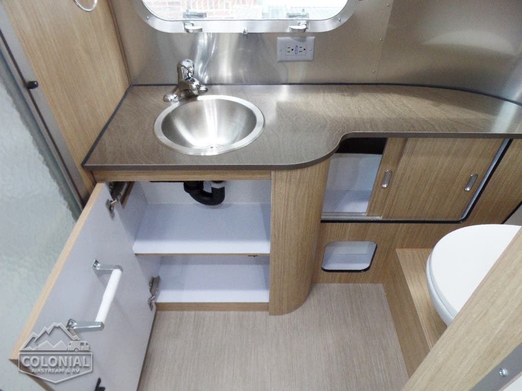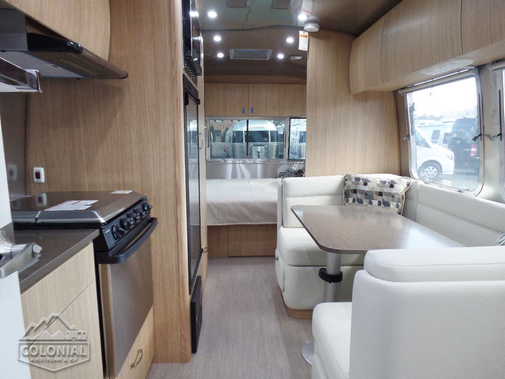 2 Deep Cycle Coach Group 24 Batteries • 7-Way Trailer Cord w/Junction Box • 110volt AC/12volt DC Power Center w/55 amp Converter and Multi-Stage Battery Charger • 12 volt ATC Fuses • Interior LED Lighting • Directional LED Reading Lights • 120 volt Exterior Outlet • Electronic Battery Disconnect • GFCI Protection for Bath, Galley & Exterior Outlet • Exterior LED Lighting Package Includes: Dump Valve, Compartment, Area & Step Light • Water Pump Switch at Galley • Solar Prewire W/Roof-Top Plugs & Plug For Portable Solar at Front Trailer A-Frame • Call Colonial Airstream 18887412603 • Dimmer Switches (2) – Main Ceiling & Bedroom Lights • Remote Generator Ready (25′ – 28′) • 30 amp Service Detachable Power Cord (19C – 28′) 50Amp 30′ • 3 USB Charge Stations •1000 Watt Inverter.