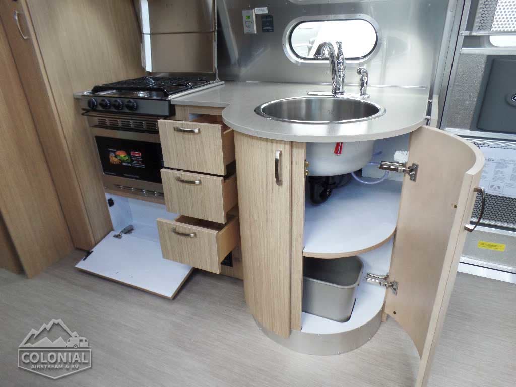 2 Deep Cycle Coach Group 24 Batteries • 7-Way Trailer Cord w/Junction Box • 110volt AC/12volt DC Power Center w/55 amp Converter and Multi-Stage Battery Charger • 12 volt ATC Fuses • Interior LED Lighting • Directional LED Reading Lights • 120 volt Exterior Outlet • Electronic Battery Disconnect • GFCI Protection for Bath, Galley & Exterior Outlet • Exterior LED Lighting Package Includes: Dump Valve, Compartment, Area & Step Light • Water Pump Switch at Galley • Solar Prewire W/Roof-Top Plugs & Plug For Portable Solar at Front Trailer A-Frame • Call Colonial Airstream 18776111615 • Dimmer Switches (2) – Main Ceiling & Bedroom Lights • Remote Generator Ready (25′ – 28′) • 30 amp Service Detachable Power Cord (19C – 28′) 50Amp 30′ • 3 USB Charge Stations •1000 Watt Inverter.