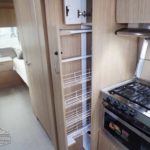 Laminated Galley Top • Sink Cover(s) • S.S. Single Bowl 18” Sink (Double Bowl on 20FB & 23FB) (15.75″ Rectangular Bowl on 19CB) • Faucet w/Separate Sprayer • Aluminum Insert on Refrigerator • Pantry Storage (N/A 28RB) • Bi-Fold Stainless Steel Range Cover • Overhead Rooflocker w/Radius Doors • Cutlery Drawer w/Hardwood Maple Drawer Organizer • Filtered Cold Water.