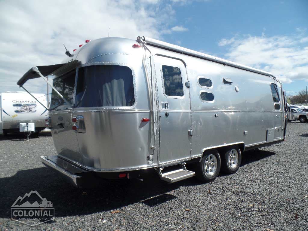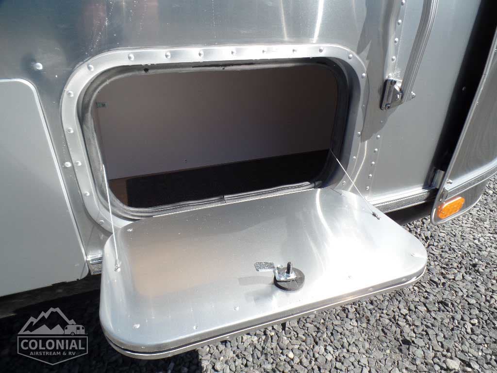 Bright Aluminum Finish / White Aluminum Finish on Roof • Polished Rear Bumper w/Storage • Flying Cloud Medallions & Graphics w/Chrome Beltline & Rub-rail w Inserts • License Plate Bracket w/LED Light • Grab Handle-Cast Aluminum • Aluminum LP Bottle Cover • Enclosed & Insulated Underbelly & Tanks • Dark Grey Patio Awning C.S. • C.S. & R.S. Awning Rails • Solar Stone Guard • Stainless Steel Wrap Protectors • Main Door w/Opaque Window • Call Colonial Airstream 18776111615 • Diamond Plate Exterior Storage Compartment • Cast Taillights – 6” LED Oval • Exterior Shower • Exterior LP Service Port w/Quick Connect Hose & Adapter Fitting • Portal Windows • LED Light Strip on Patio Awning with Dimmer Switch • Wireless Backup/Driving Camera W/Monitor.
