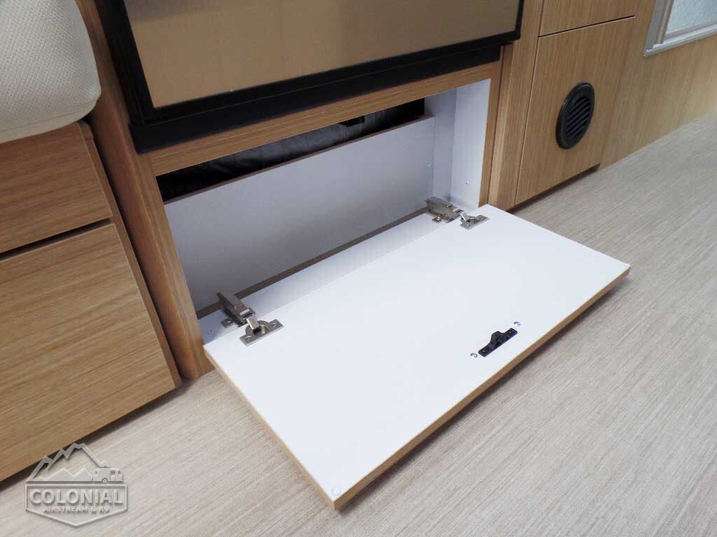 Radio Antenna • LED HD TV (22″ for 19′-23′ & 29″ for 25′-30′ Models) • Blu-Ray Player w/ Any Net Feature • Clarion Digital Media Player w/ Display for iPod/MP3 • 2 pair of 6.5″ 2 Way Clarion Speakers 30W • Call Colonial Airstream 18776581861 • Active Sub-woofer–100 Watt • Cable & Portable Satellite Hook-Ups • TV Antenna, Signal amplifier & TV Jack • LED/ HD 22′ Bedroom TV (25′ – 30′ Models) w/ Articulating Wall Bracket • Bunk Area TV (30FB).