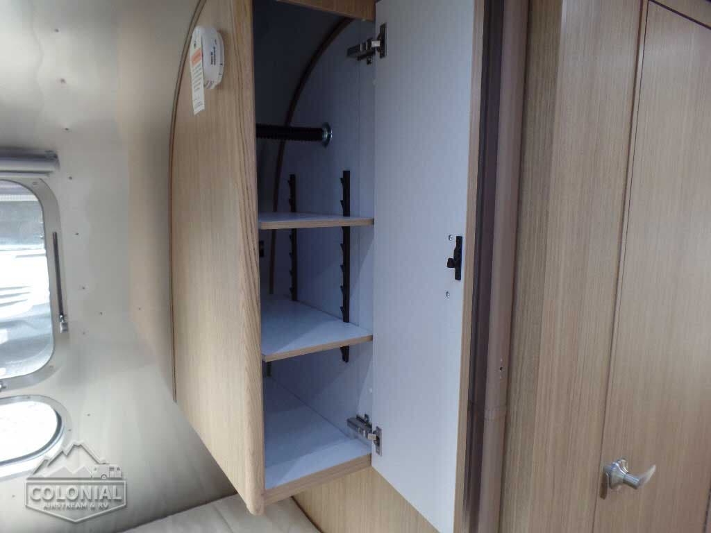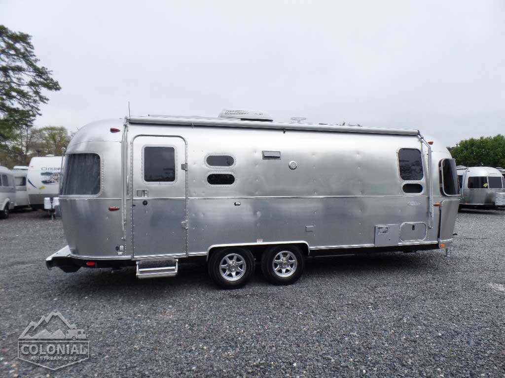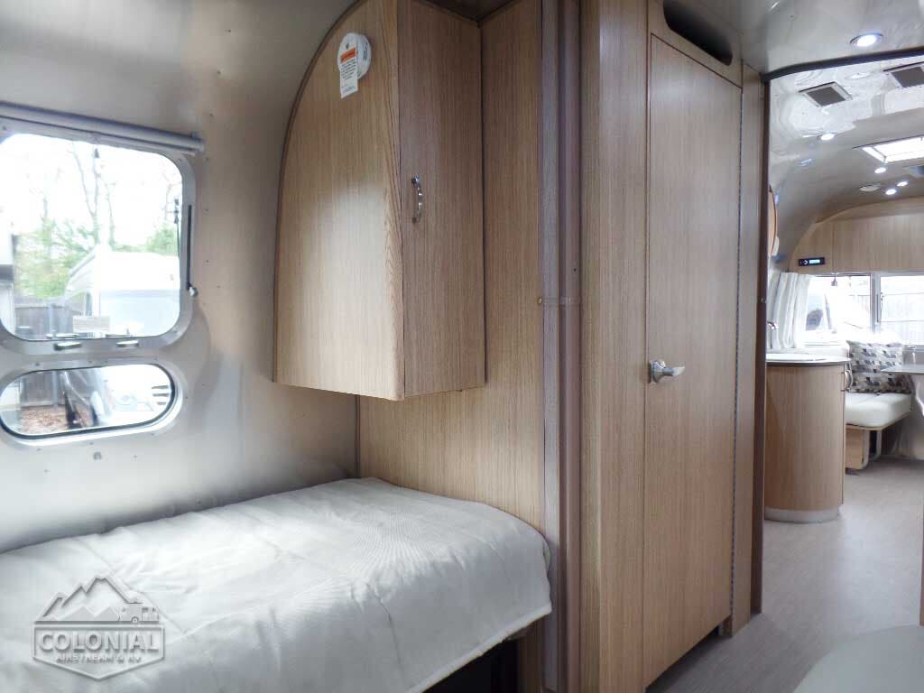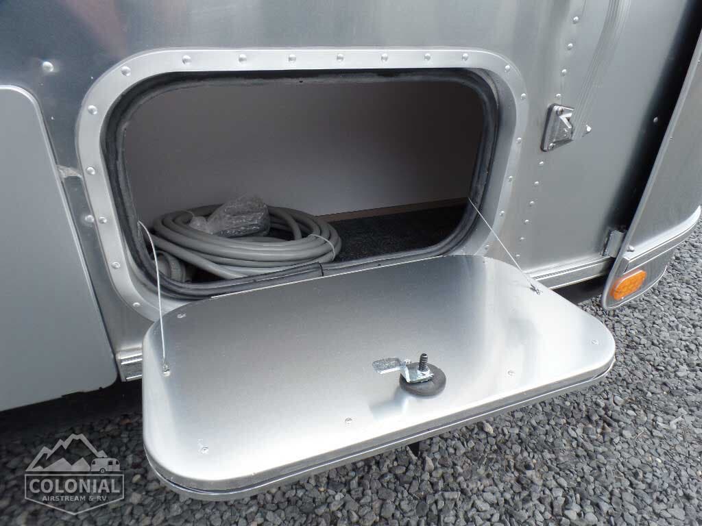 Bright Aluminum Finish / White Aluminum Finish on Roof • Polished Rear Bumper w/Storage • Flying Cloud Medallions & Graphics w/Chrome Beltline & Rub-rail w Inserts • License Plate Bracket w/LED Light • Grab Handle-Cast Aluminum • Aluminum LP Bottle Cover • Enclosed & Insulated Underbelly & Tanks • Dark Grey Patio Awning C.S. • C.S. & R.S. Awning Rails • Solar Stone Guard • Stainless Steel Wrap Protectors • Main Door w/Opaque Window • Call Colonial Airstream 18776581861 • Diamond Plate Exterior Storage Compartment • Cast Taillights – 6” LED Oval • Exterior Shower • Exterior LP Service Port w/Quick Connect Hose & Adapter Fitting • Portal Windows • LED Light Strip on Patio Awning with Dimmer Switch • Wireless Backup/Driving Camera W/Monitor.