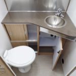 Laminated Galley Top • Sink Cover(s) • S.S. Single Bowl 18” Sink (Double Bowl on 20FB & 23FB) (15.75″ Rectangular Bowl on 19CB) • Faucet w/Separate Sprayer • Aluminum Insert on Refrigerator • Pantry Storage (N/A 28RB) • Bi-Fold Stainless Steel Range Cover • Overhead Rooflocker w/Radius Doors • Cutlery Drawer w/Hardwood Maple Drawer Organizer • Filtered Cold Water.