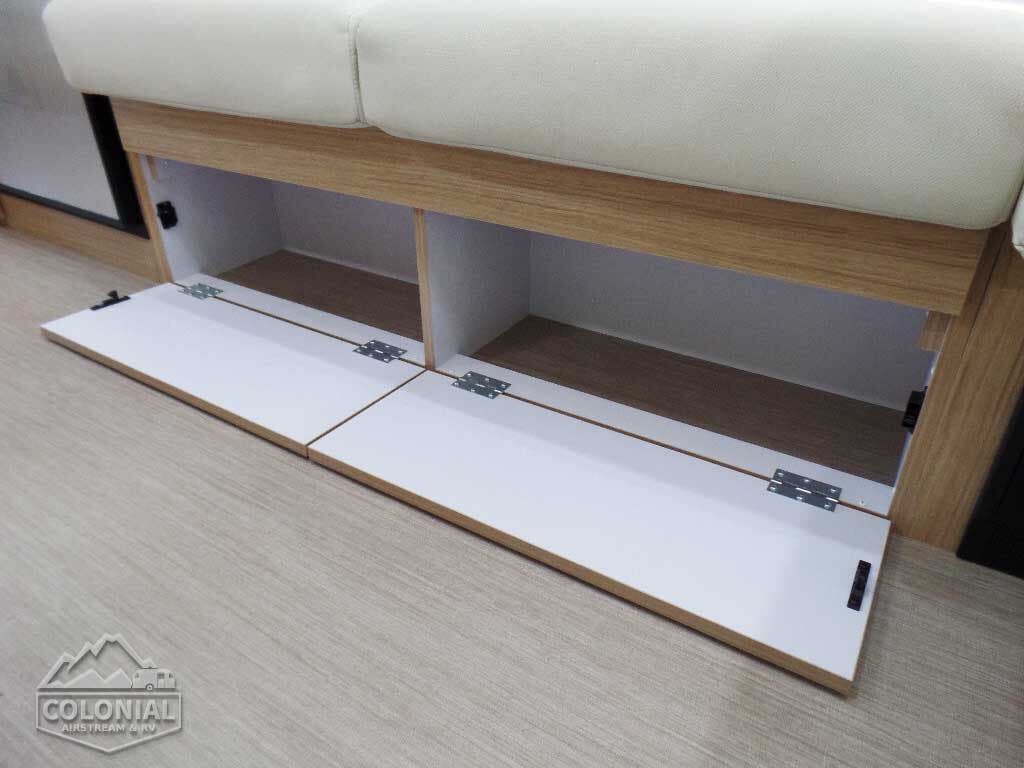 Pillow Top Memory Foam Mattress • Quilted Bedspread w/Reverse Sham w/Decorative Throw Pillows • (2) Regular Bed Pillows • Call Colonial Airstream 18776581861 • Removable Under Bed Storage Bins • Sleeping Capacities: 2 – 4 (19CB; 20FB); 2 – 5 (23CB; 25FB, 25RB 27FB) ; 2 – 6 (28RB , & 30RB); 8 (30FB Bunk) • 30 FB Bunk Only Has Corner Double Lower Bed 54″X 76″ w/pillowtop memory foam mattress & single upper bunk 30″X78″ w/quilted mattress /C.S. Wardrobe Sleeping Capacities: 2 – 4 (19CB, 20FB, & 23FB); 2 -5 (23CB, 25FB, 25RB – 27FB); 2 -6 (28RB & 30RB); 2- 8 (30 Bunk).