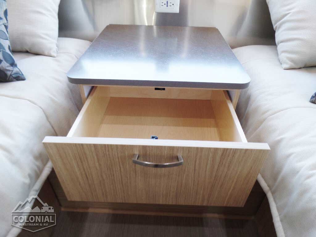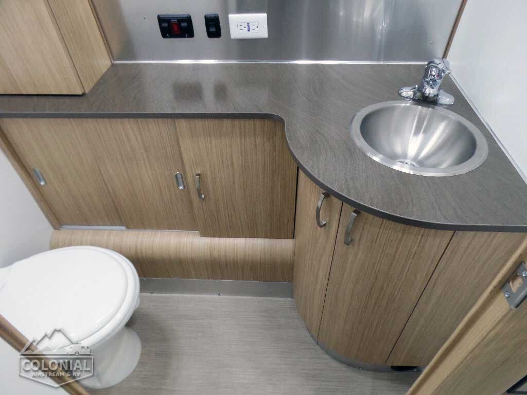 2 Deep Cycle Coach Group 24 Batteries • 7-Way Trailer Cord w/Junction Box • 110volt AC/12volt DC Power Center w/55 amp Converter and Multi-Stage Battery Charger • 12 volt ATC Fuses • Interior LED Lighting • Directional LED Reading Lights • 120 volt Exterior Outlet • Electronic Battery Disconnect • GFCI Protection for Bath, Galley & Exterior Outlet • Exterior LED Lighting Package Includes: Dump Valve, Compartment, Area & Step Light • Water Pump Switch at Galley • Solar Prewire W/Roof-Top Plugs & Plug For Portable Solar at Front Trailer A-Frame • Call Colonial Airstream 18776581861 • Dimmer Switches (2) – Main Ceiling & Bedroom Lights • Remote Generator Ready (25′ – 28′) • 30 amp Service Detachable Power Cord (19C – 28′) 50Amp 30′ • 3 USB Charge Stations •1000 Watt Inverter.