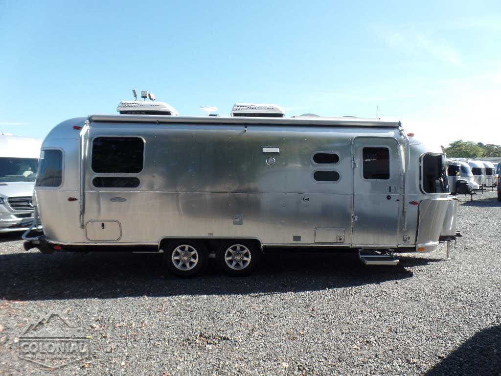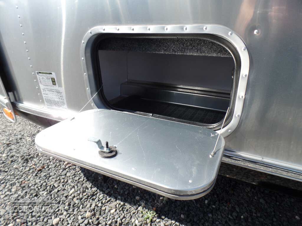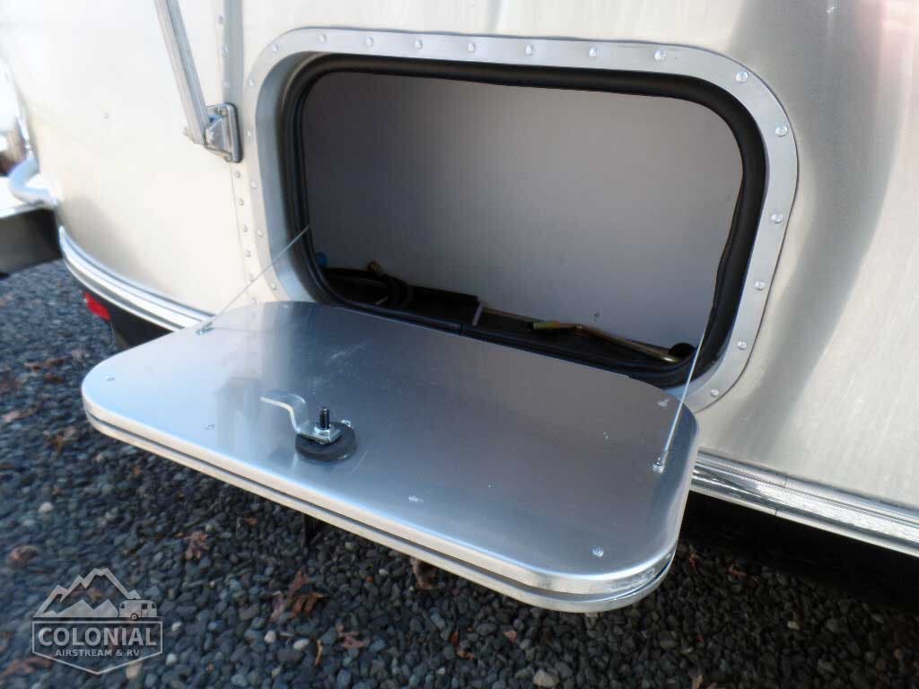 Bright Aluminum Finish / White Aluminum Finish on Roof • Polished Rear Bumper w/Storage • Flying Cloud Medallions & Graphics w/Chrome Beltline & Rub-rail w Inserts • License Plate Bracket w/LED Light • Grab Handle-Cast Aluminum • Aluminum LP Bottle Cover • Enclosed & Insulated Underbelly & Tanks • Dark Grey Patio Awning C.S. • C.S. & R.S. Awning Rails • Solar Stone Guard • Stainless Steel Wrap Protectors • Main Door w/Opaque Window • Call Colonial Airstream 18776581861 • Diamond Plate Exterior Storage Compartment • Cast Taillights – 6” LED Oval • Exterior Shower • Exterior LP Service Port w/Quick Connect Hose & Adapter Fitting • Portal Windows • LED Light Strip on Patio Awning with Dimmer Switch • Wireless Backup/Driving Camera W/Monitor.