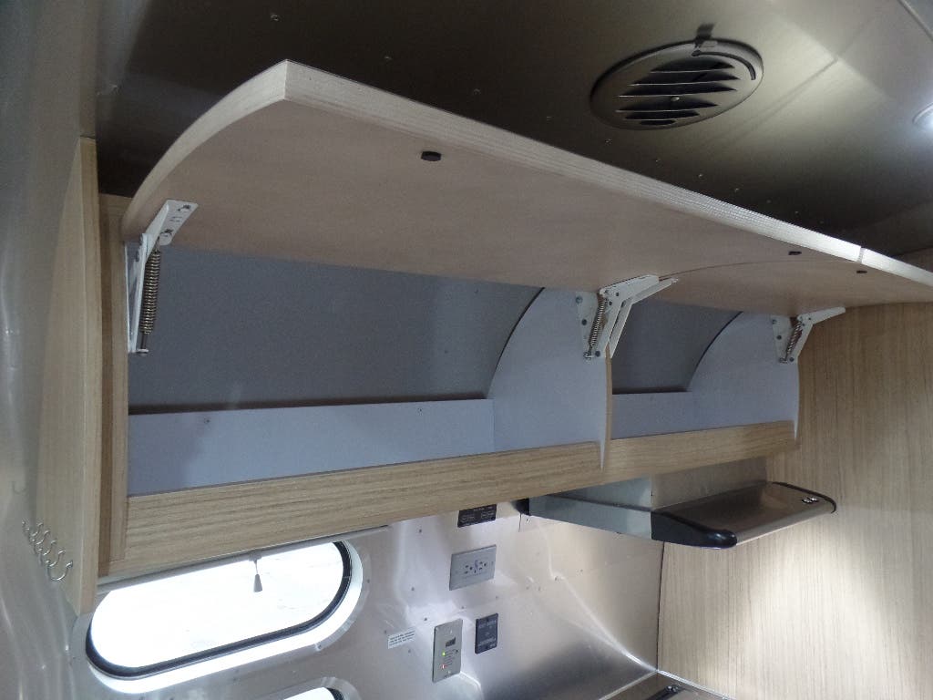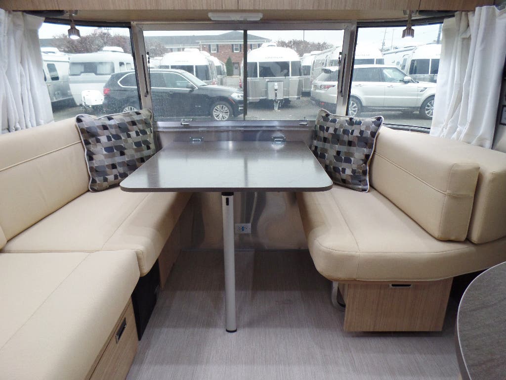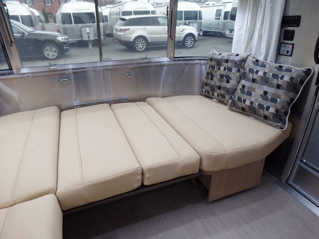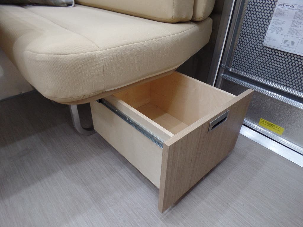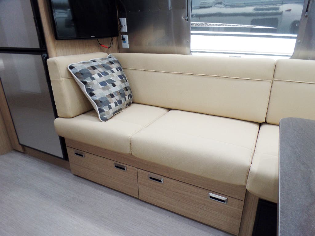Pull Roller Shades on All Windows except Drapes on Panoramic Windows (N/A 30FB) • Bright Aluminum Finish Interior Skin • Wood drawer boxes w/ full extension, self closing ball-bearing drawer glides • Overhead Rooflockers w/ Radius Doors • Entrance Mat w/Airstream Logo • Grab Handle • Vinyl Flooring Throughout • Call Colonial Airstream 1-800-265-9019 • Satin Finish Hardware • Curtains W/Blackout Linings • 5-Hook Key Holder • LED Ceiling Lights • Magazine Rack (N/A 27FB)• Laminate Furniture & Countertops.