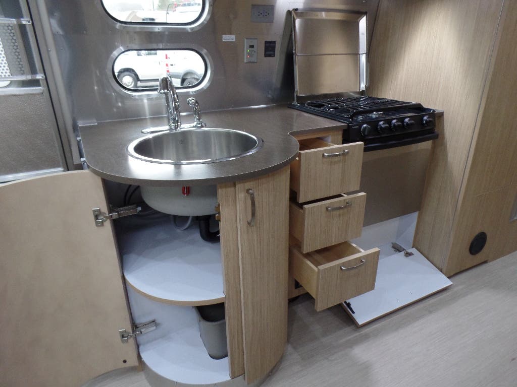 Laminated Galley Top • Sink Cover(s) • S.S. Single Bowl 18” Sink (Double Bowl on 20FB & 23FB) (15.75? Rectangular Bowl on 19CB) • Faucet w/Separate Sprayer • Aluminum Insert on Refrigerator • Pantry Storage (N/A 28RB) • Bi-Fold Stainless Steel Range Cover • Overhead Rooflocker w/Radius Doors • Cutlery Drawer w/Hardwood Maple Drawer Organizer • Filtered Cold Water.