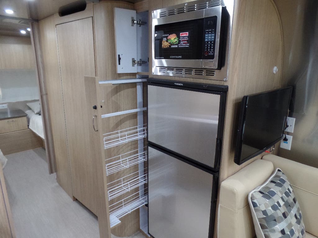 13,500 BTU Air Conditioner w/Heat Pump & Electronic Controls (19CB, 20FB, 23CB & 23FB) • 15,000 BTU Ducted Air Conditioning System W/Heat Pump & Electronic Control (25RB, 25FB, 27FB, 28RB ), Bedroom 2nd A/C for 30RB & 30FB • Comfort Control Center • Furnace w/Electronic Ignition (16,000 BTU for 19CB; 18,000 BTU for 20FB & 23’FB; 25,000 BTU for 23CB; 25FB, 25RB – 27FB; & 30,000 BTU for 28RB, 30FB & 30RB) • 3-Burner Cooktop w/Oven w/Black Top & Stainless Steel Door • Microwave (23′, 25RB, 30′) • Stainless Steel Range Hood w/Vent & Light • Call Colonial Airstream 1-800-265-9019 • 2 Fantastic Vents w/Thermostat & Rain Sensor • 12 volt Bath Exhaust Fan (N/A 23’FB) • 2-Way Refrigerator (4 cu. ft. refrigerator in 19CB-20FB; 5 cu. ft.refrigerator in 23′; 7 cu.ft.refrigerator in 25′ – 28′ Models; 8 cu. ft.refrigerator in all 30′ Models) • Probeless Tank Monitoring System (Wall Mounted) • 6 Gallon LP/Electric Water Heater – XT Series (Equivalent Output of a 9 Gallon Water Heater) • Fire Extinguisher • LP, Smoke & Carbon Monoxide Detectors.