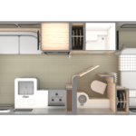 Complete Aluminum Interior Walls and Ceiling, Quietstream™ AC with Heat Pump & Electronic Thermostat, Fantastic© Fan with Thermostat & Automatic Rain Sensor, Probeless Tank Monitoring System, EcoBatt™ Insulation, 5/8 in. WBP Tongue-and-Groove Wood Floor, Anti-wicking Outside Edge Floor Sealant, Aluminum Screen Door with Guards, Panoramic Front Windows with Pleated Blackout Shades, Handcrafted Italian Lite-Ply Laminated Interior Cabinetry, Custom Curved Overhead Cabinets with Fingerprint Resistant Surface, Overhead Roof Cabinets with Back Lighting and Heavy Duty Hinges and Struts, Seamless Luxury Woven Vinyl Flooring, LED Interior Lighting with Dimmer, LED Interior Accent Lighting, Electric/LP Water Heater (6 gal.; 9 gal. production), 1000W Pure Sine Inverter, Coat & Key Hooks.