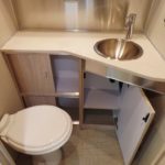 Removable Hand-Held Shower Head with Shut Off, Porcelain Toilet, Lavy Sink, Roof Vent/Fan, Towel Bar/Ring, Retractable Clothes Line in Shower, Grohe Faucet.