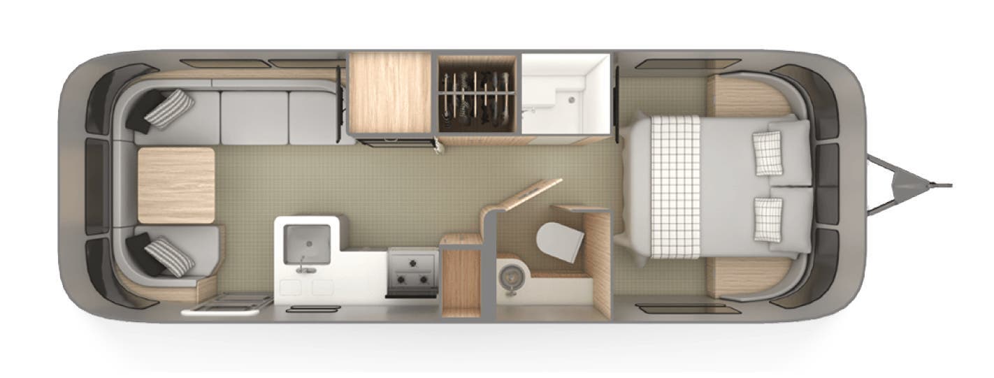 Semi-Monocoque Aluminum Superstructure, Fluorocarbon Treated UV Protected Aluminum Exterior, Temperature Reducing One Piece White Aluminum Roof, Thermal Barrier Protection Between Interior and Exterior, Hand Crafted Welded Extruded Aluminum Window Frames, Tempered Tinted Windows with Double Cam Latching System, Powered ZipDee® Patio Awning with Sunbrella Fabric, ZipDee® Rear & Roadside Window Awning with Sunbrella Fabric, LED Dimmable Patio Awning Light, Polished Bumper with Storage, LP (2 – 30 lb. Steel Tanks) with auto 2-stage regulator, Aluminum LP Cover, 2 Deep Cycle Batteries Group 24 Series 12V with Multi-Stage Converter, Exterior LP Quick Connect Service Port (For Low Pressure Camping Grill), Solar Front Window Protection, Stainless Steel Front Stone Guard Protection, Exterior Shower with Hot & Cold Water, Lockable Fresh Water Tank Inlet, City Water Inlet with Water Pressure Regulator, Black Tank Flush System, Hand Painted Chassis, Torsion Axle Suspension, Shock Absorber, Powered Hitch Jack with Light, 4 Powered Heavy Duty Stabilizer Jacks, Goodyear® Endurance ST225/75R15 Load Range E Tires, Balanced, Stylized Aluminum Wheels, Nev-R-Lube® Bearings, Nev-R-Adjust® Brakes, Spare Tire – Full Size, Solar Pre-wire (Rooftop & Front Access Points), Solar Package with Interior Monitor and AGM Batteries (160w) (OPTIONAL), Rear View Backup/Driving Monitoring System, Cable TV Hookup, Satellite TV Hookup, Dedicated Waste Hose Storage, Custom Handcrafted 26” Wide Entry Door with Window, Aluminum Entry Door Handle, Unique Front Door Key with Heavy Duty Deadbolt, Cast Aluminum Door Hinges, Aluminum Bi-Fold Entry Step, LED Entrance Light, LED Tank Service Light, LED Storage Compartment Light, Cast Aluminum LED Tail Lights, License Plate Bracket with LED Light, Enclosed Aluminum Insulated Heated Underbelly.
