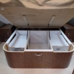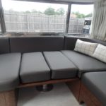 Stainless Steel 3 Burner Cooktop (LP Gas) with Glass Top, Baraldi Cooking Vent with Light, Dupont Corian® Solid Surface Galley Top, Multifunctional Storage Bins Behind Galley Sink with Dupont Corian® Covers, Moen® Stainless Steel Sink with Dupont Corian® Sink Cover, Custom Laminate Dinette Top, Award Winning Spradling HITCH® http://www.spradling.eu/collections/hitch Lounge and Dinette Seating (Stain Resistant), Dinette Converts to a Lounge and Sleeping Accommodations, Pull Out Lounge for Sleeping Accommodations, Flatware Organizer, Polk® Surround Sound FM/AM Radio with Bluetooth® (in/out), XM Ready, Blu-Ray™ DVD Player, Samsung LED HD TV with Omni Directional Antenna, Oceanair Roller Blinds, Franke Faucet.