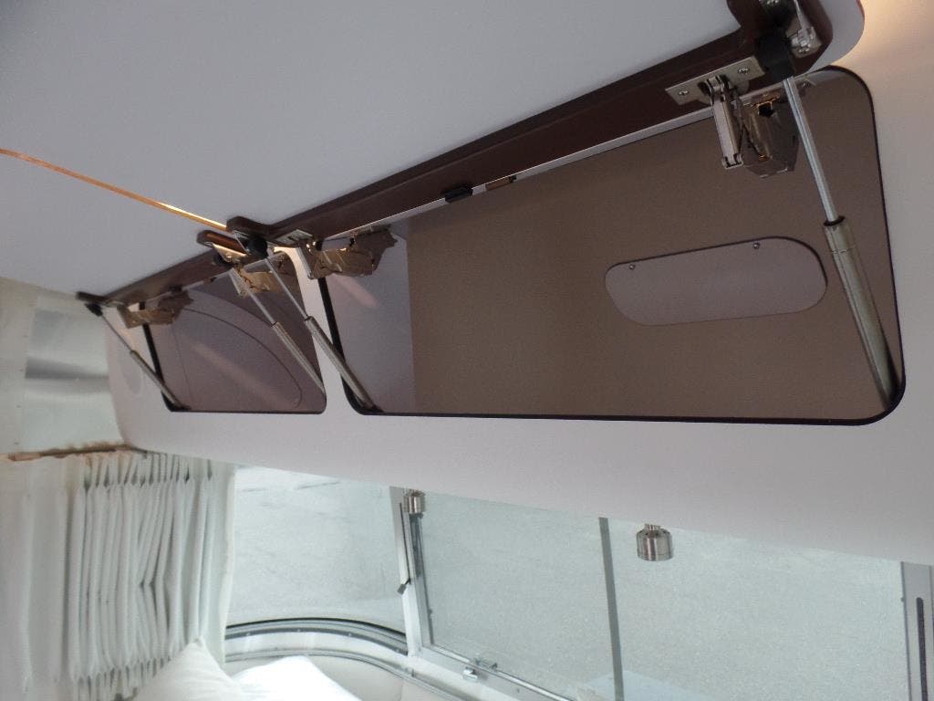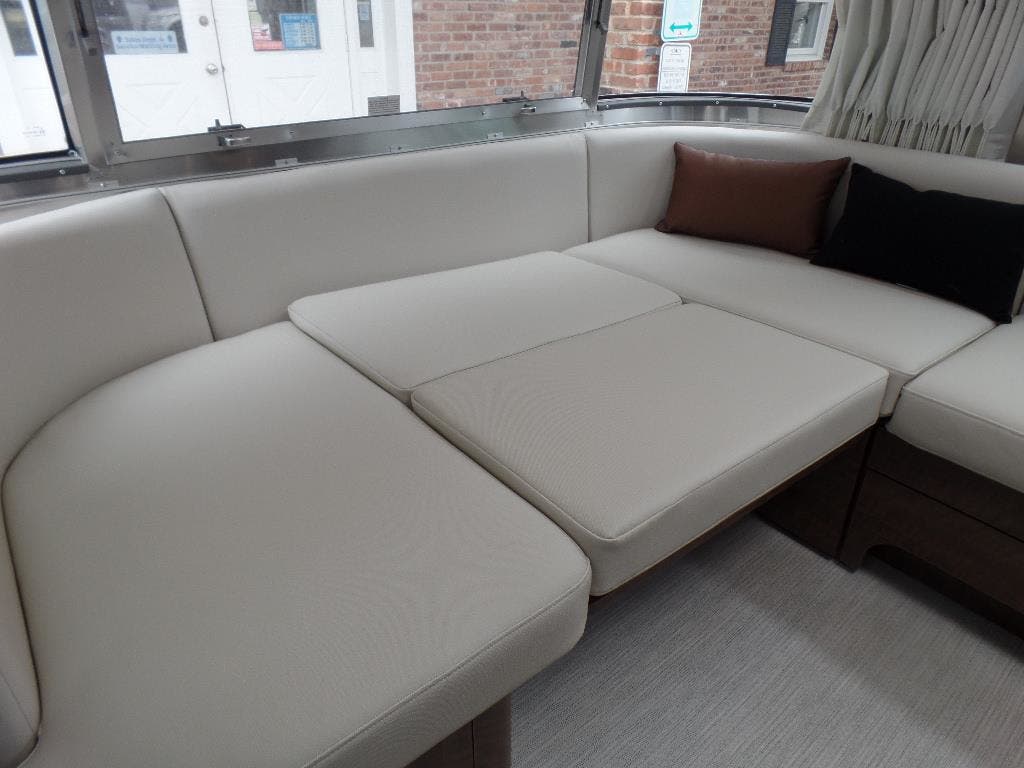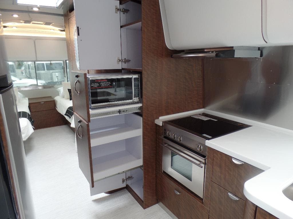 Stainless Steel 3 Burner Cooktop (LP Gas) with Glass Top, Baraldi Cooking Vent with Light, Dupont Corian® Solid Surface Galley Top, Multifunctional Storage Bins Behind Galley Sink with Dupont Corian® Covers, Moen® Stainless Steel Sink with Dupont Corian® Sink Cover, Custom Laminate Dinette Top, Award Winning Spradling HITCH® http://www.spradling.eu/collections/hitch Lounge and Dinette Seating (Stain Resistant), Dinette Converts to a Lounge and Sleeping Accommodations, Pull Out Lounge for Sleeping Accommodations, Flatware Organizer, Polk® Surround Sound FM/AM Radio with Bluetooth® (in/out), XM Ready, Blu-Ray™ DVD Player, Samsung LED HD TV with Omni Directional Antenna, Oceanair Roller Blinds, Franke Faucet.