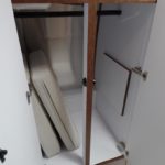 Removable Hand-Held Shower Head with Shutoff, Porcelain Toilet, Lavy Sink, Roof Vent/Fan, Towel Bar/Ring, Retractable Clothes Line in Shower, Grohe Faucet.