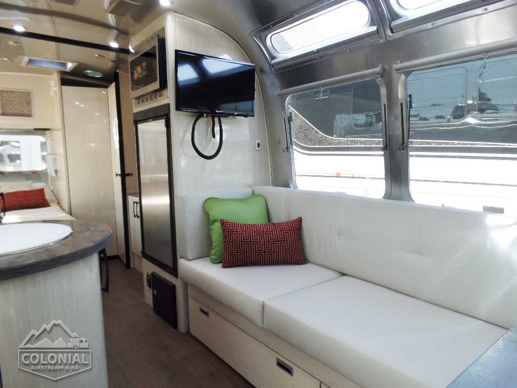 Bright Aluminum Finish – White Aluminum Finish on Roof • Polished Rear Bumper w/Storage • International Medallion w/Chrome Beltline & Rub-rail w/Inserts • CCD Nameplate • Signature Series Logo • License Plate Bracket w/LED Light • Grab Handle -Cast Aluminum• Aluminum LP Bottle Cover • Enclosed/Insulated Underbelly & Tanks • Dark Grey Zip Dee Power Patio Awning C.S.• Call Colonial Airstream 18663073857 • Stainless Steel Wrap Protectors • C.S. & R.S. Awning Rails • Solar Stoneguard • Main Door w/Opaque Window • Diamond Plate Exterior Storage Compartment • Cast Taillights – 6” LED Oval • Exterior LP Service Port w/QuickConnect Hose & Adapter Fitting • Exterior Shower • LED Light Strip on Patio Awning with Dimmer Switch, Roadside & Rear Window Awnings, Wireless Backup/Driving Camera W/Monitor.