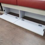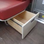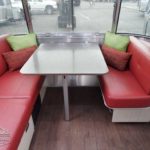 Corian Galley Top • Sink Cover • S.S. Single Round Bowl 18” Chrome Faucet w/Pull-Out • Filtered Cold Water • Brushed Stainless Steel Insert on Refrigerator • Bi-Fold Stainless Steel Range Cover • Overhead Rooflocker w/Slider Doors & LED Accent Lighting 42″ X 76″ Dinette (23CB, 25’FB, 25RB & 27FB) • 39” X 76” Dinette ( 23FB, 28RB & 30RB) • Call Colonial Airstream 18663073857 • Cutlery Drawer w/Hardwood Maple Drawer Organizer.