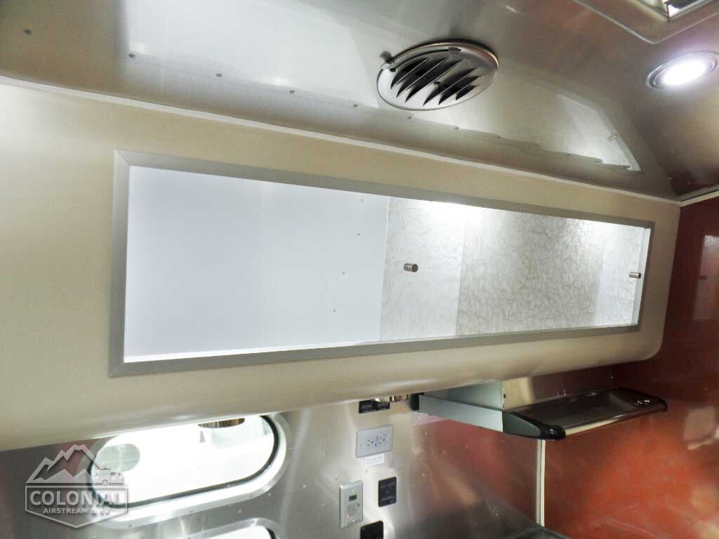 Pull Roller Shades on All Windows Except Drapes on Panoramic Windows • Full Closeout Drapes At Panoramic Windows W/Blackout Linings • Bright Aluminum Finish Interior Skin • Laminate Furniture & Countertops • Wood drawer boxes w/ full extension, self closing ball-bearing drawer glides • Call Colonial Airstream 18663073857 • Overhead Rooflockers w/ Slider Doors & LED Accent Lighting • Entrance Mat w/Airstream Logo • Interior Grab Handle • Vinyl Flooring Throughout • Magazine Rack (N/A 27FB)