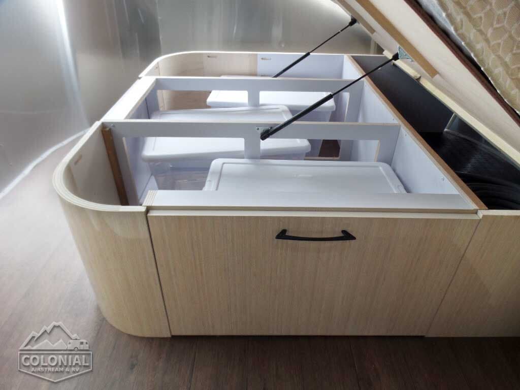 Two Deep Cycle Coach Group 24 Batteries • 7-Way Trailer Cord w/Junction Box • 110volt AC/12volt DC Power Center w/55 amp Converter • 12 volt ATC Fuses • Interior LED Lighting • Directional LED Reading Lights • 120 volt Exterior Outlet • GFCI Protection for Bath, Galley & Exterior Outlet • Exterior LED Lighting Package Includes: Dump Valve, Compartment Area & Door Light • Call Colonial Airstream 18663073857 • Water Pump Switch at Galley • Solar Prewire W/Roof-Top Plugs & Plug For Portable Solar at Front Trailer A-Frame • Dimmer Switches (2) – Main Ceiling & Bedroom Lights • Electronic Battery Disconnect • 30 amp Service Detachable Power Cord • Remote Generator Ready (25FB, 25RB, 27FB & 28RB) • 3 USB Charge Stations •1000 Watt Inverter.