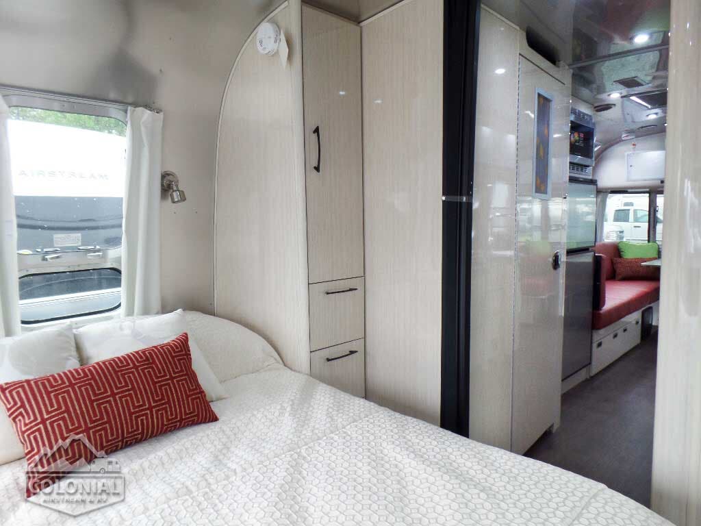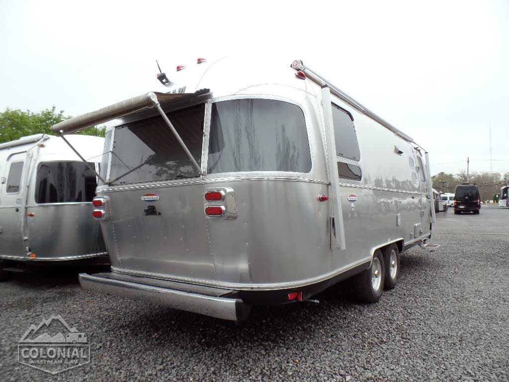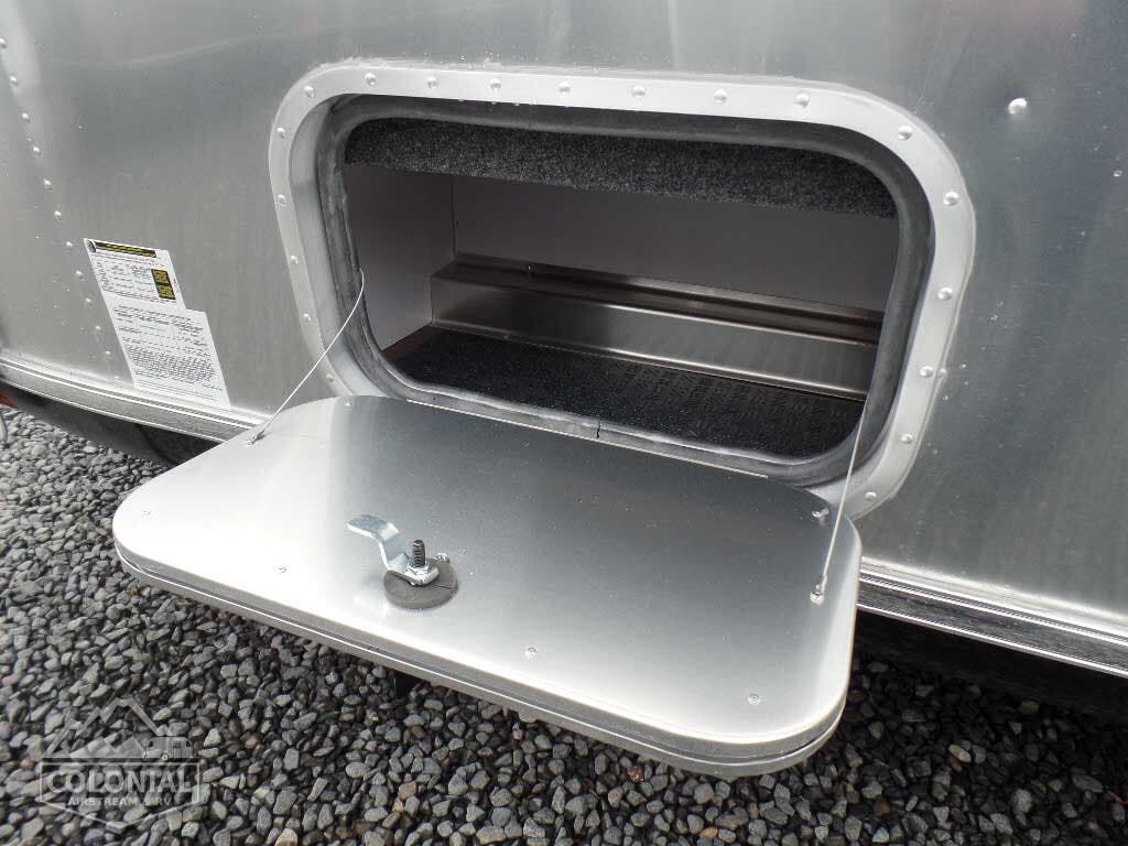 Bright Aluminum Finish – White Aluminum Finish on Roof • Polished Rear Bumper w/Storage • International Medallion w/Chrome Beltline & Rub-rail w/Inserts • CCD Nameplate • Signature Series Logo • License Plate Bracket w/LED Light • Grab Handle -Cast Aluminum• Aluminum LP Bottle Cover • Enclosed/Insulated Underbelly & Tanks • Dark Grey Zip Dee Power Patio Awning C.S.• Call Colonial Airstream 18663073857 • Stainless Steel Wrap Protectors • C.S. & R.S. Awning Rails • Solar Stoneguard • Main Door w/Opaque Window • Diamond Plate Exterior Storage Compartment • Cast Taillights – 6” LED Oval • Exterior LP Service Port w/QuickConnect Hose & Adapter Fitting • Exterior Shower • LED Light Strip on Patio Awning with Dimmer Switch, Roadside & Rear Window Awnings, Wireless Backup/Driving Camera W/Monitor.