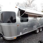 Hand Painted Front and Rear Exposed Chassis • Styled Aluminum Wheels • 3000 lb Electric Hitch Jack w/ Light • 4 Heavy Duty Stabilizer Jacks • Radial Black Wall 225-75-R15 Goodyear Endurance Tires, LRE 15” • Call Colonial Airstream 18663073857 • 12″ Electric Drum Nev-R-Adjust Brakes • Nev-R-Lube Hubs • Spare Tire, Bracket & Steel Wheel • Aluminum Bi-Fold Entry Step.