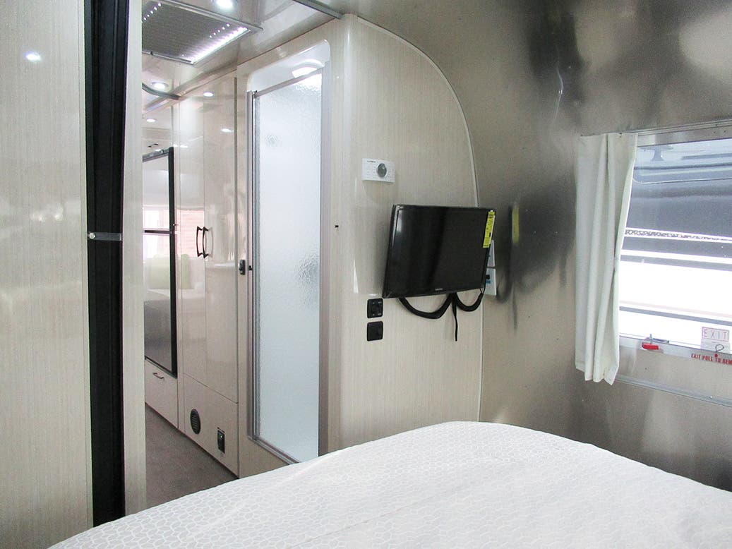 Radio Antenna • LED HD TV (22″ for 23CB & 23FB’ & 28″ for 25FB, 25RB, 27FB, 28RB & 30RB) • Clarion Digital Media Player w/ Display for iPod/MP3, & External USB Input • Call Colonial Airstream 1-800-265-9019 • Blu-Ray Player w/Anynet Feature • 2 pr 6.5” 2-Way Clarion Speakers 30W • 30 Watts Max X 4 Channels • Active Subwoofer – 100 Watt • Cable & Portable Satellite Hook-Ups • TV Antenna, Signal Amplifier & TV Jack • LED/ HD 22″ Bedroom TV w/Articulating Wall Bracket (25FB, 25RB, 27FB, 28RB & 30RB).