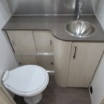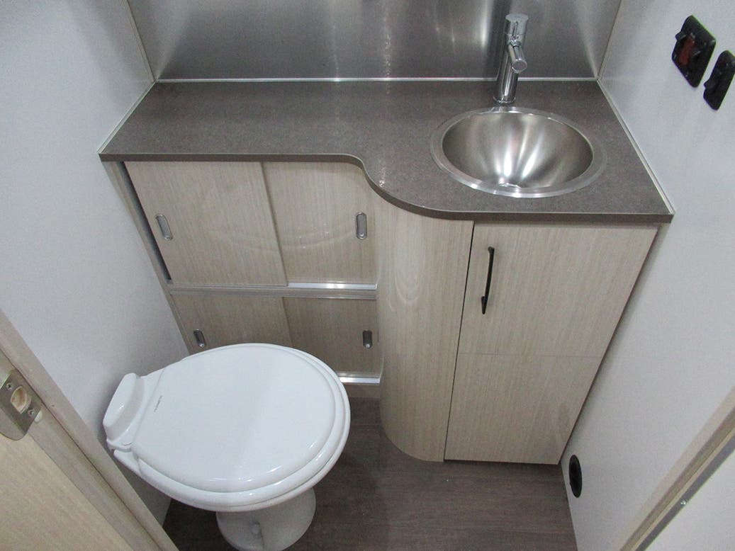 Towel Bar • Towel Ring • Robe Hook • Hinged Bath Door w/Window • Retractable Clothes Line in Shower • Stainless Steel Round Lavy Sink • China Toilet • Call Colonial Airstream 1-800-265-9019 • Mirrored Medicine Cabinet (N/A 23FB, 25RB & 30RB) • Articulating Swivel Double-Sided Mirror (23FB, 25RB & 30RB only).