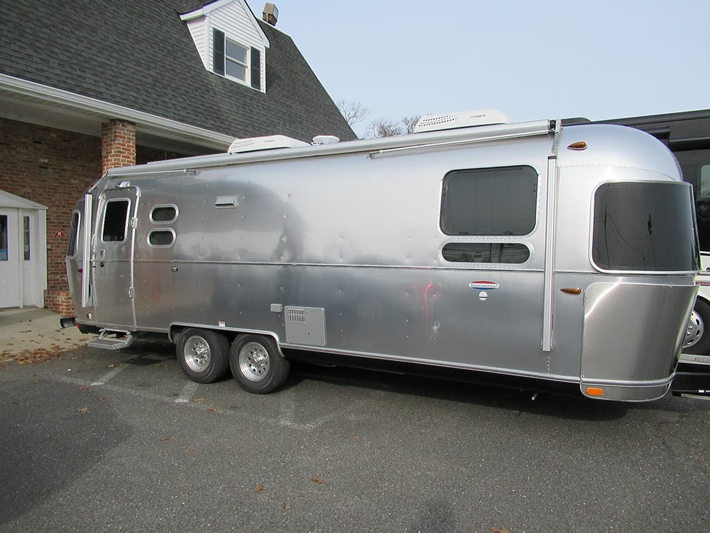 Hand Painted Front and Rear Exposed Chassis • Styled Aluminum Wheels • 3000 lb Electric Hitch Jack w/ Light • 4 Heavy Duty Stabilizer Jacks • Radial Black Wall 225-75-R15 Goodyear Endurance Tires, LRE 15” • Call Colonial Airstream 1-800-265-9019 • 12″ Electric Drum Nev-R-Adjust Brakes • Nev-R-Lube Hubs • Spare Tire, Bracket & Steel Wheel • Aluminum Bi-Fold Entry Step.