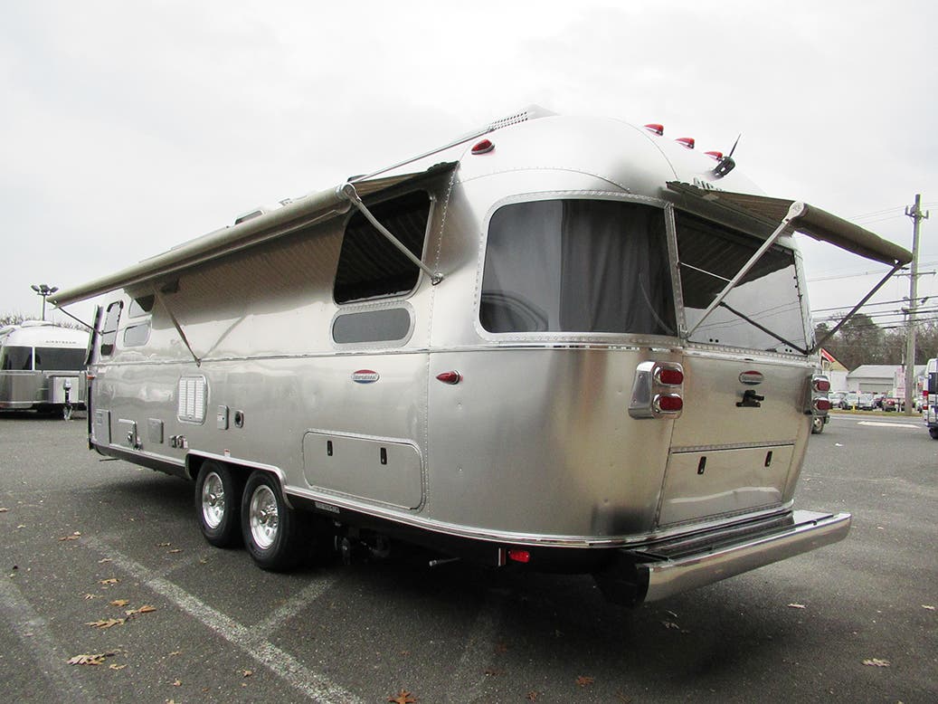 Bright Aluminum Finish – White Aluminum Finish on Roof • Polished Rear Bumper w/Storage • International Medallion w/Chrome Beltline & Rub-rail w/Inserts • CCD Nameplate • Signature Series Logo • License Plate Bracket w/LED Light • Grab Handle -Cast Aluminum• Aluminum LP Bottle Cover • Enclosed/Insulated Underbelly & Tanks • Dark Grey Zip Dee Power Patio Awning C.S.• Call Colonial Airstream 1-800-265-9019 • Stainless Steel Wrap Protectors • C.S. & R.S. Awning Rails • Solar Stoneguard • Main Door w/Opaque Window • Diamond Plate Exterior Storage Compartment • Cast Taillights – 6” LED Oval • Exterior LP Service Port w/QuickConnect Hose & Adapter Fitting • Exterior Shower • LED Light Strip on Patio Awning with Dimmer Switch, Roadside & Rear Window Awnings, Wireless Backup/Driving Camera W/Monitor.