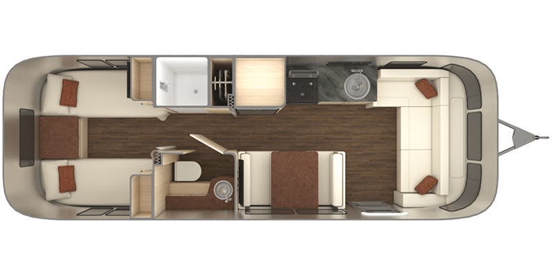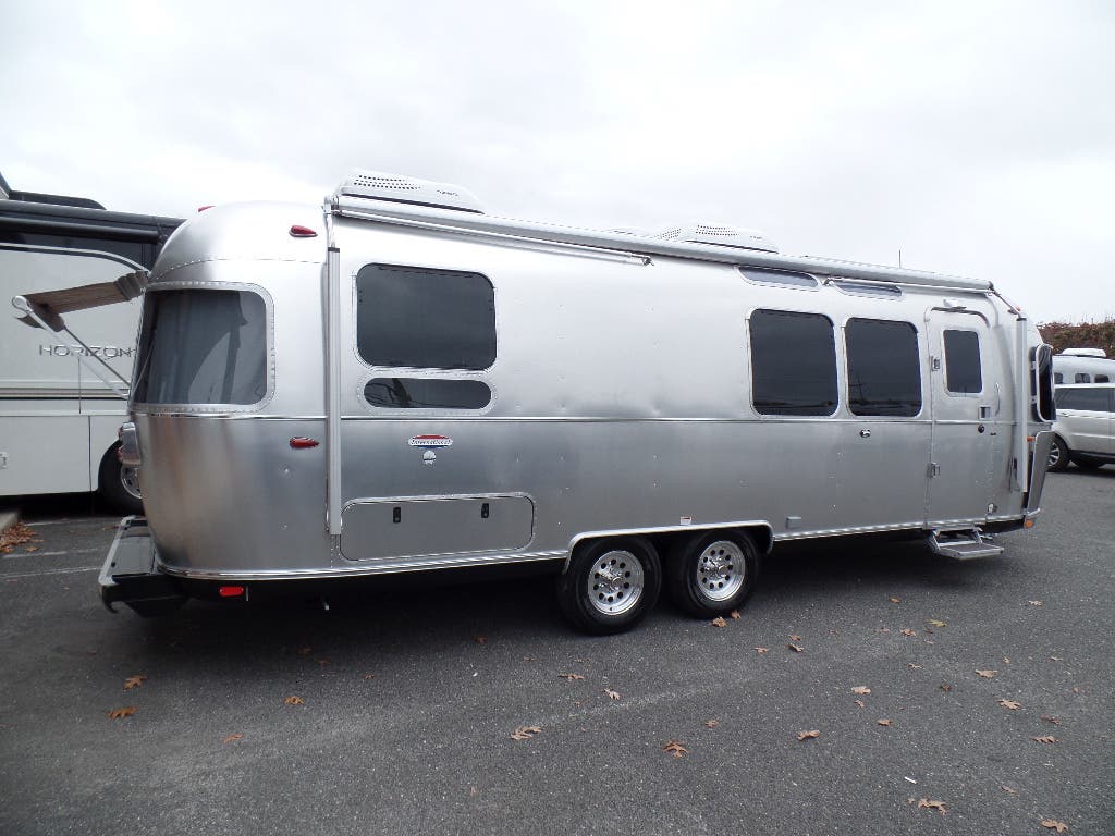 Pull Roller Shades on All Windows Except Drapes on Panoramic Windows • Full Closeout Drapes At Panoramic Windows W/Blackout Linings • Bright Aluminum Finish Interior Skin • Laminate Furniture & Countertops • Wood drawer boxes w/ full extension, self closing ball-bearing drawer glides • Call Colonial Airstream 1-800-265-9019 • Overhead Rooflockers w/ Slider Doors & LED Accent Lighting • Entrance Mat w/Airstream Logo • Interior Grab Handle • Vinyl Flooring Throughout • Magazine Rack (N/A 27FB)