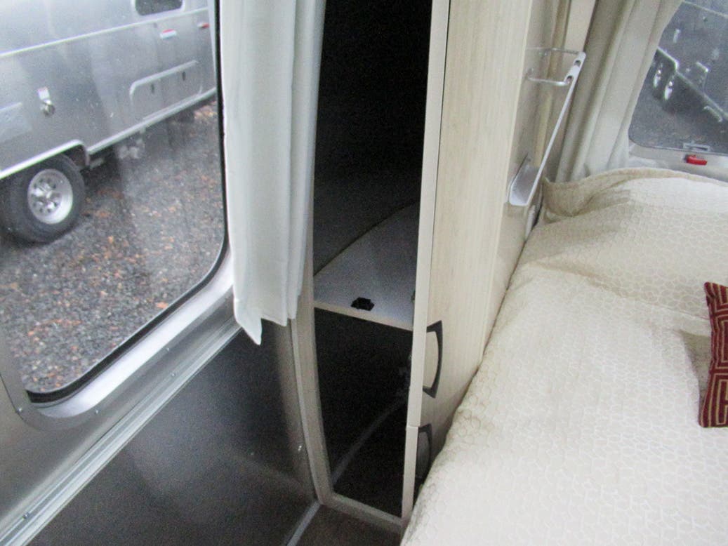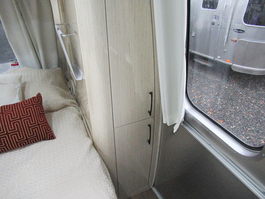 Pull Roller Shades on All Windows Except Drapes on Panoramic Windows • Full Closeout Drapes At Panoramic Windows W/Blackout Linings • Bright Aluminum Finish Interior Skin • Laminate Furniture & Countertops • Wood drawer boxes w/ full extension, self closing ball-bearing drawer glides • Call Colonial Airstream 1-800-265-9019 • Overhead Rooflockers w/ Slider Doors & LED Accent Lighting • Entrance Mat w/Airstream Logo • Interior Grab Handle • Vinyl Flooring Throughout • Magazine Rack (N/A 27FB)