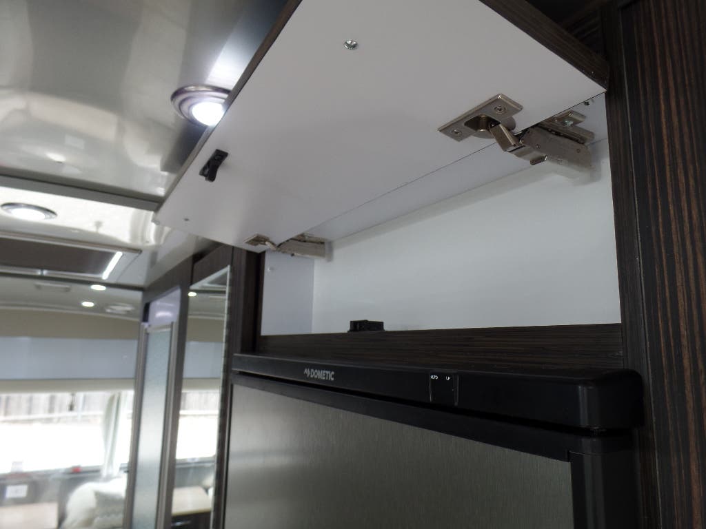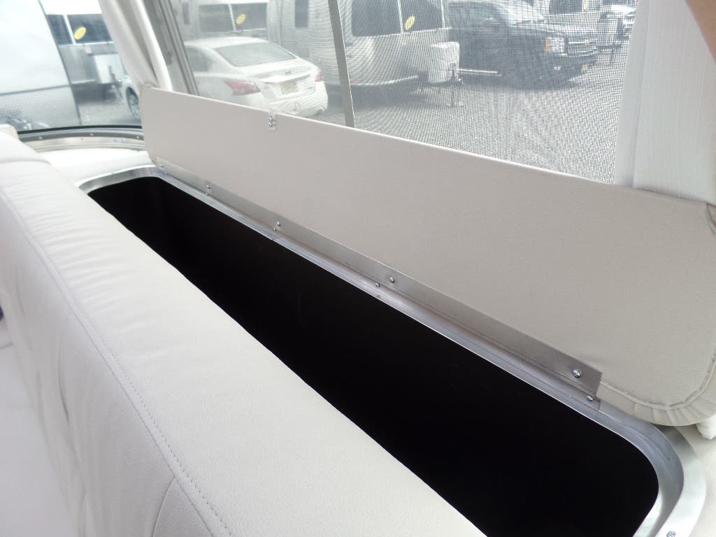 Pull Roller Shade • Full Closeout Drapes at Panoramic Windows W/Blackout Linings • Bright Aluminum Finish Interior Skin • Laminate Furniture & Countertops • Wood Drawer Boxes Full Extension Hardware • Overheads Rooflockers with Slider Doors & LED Accent Lighting • Entrance Mat w/Airstream Logo • Interior Grab Handle • Seamless Vinyl Flooring Throughout • Magazine Rack (N/A 27′).
