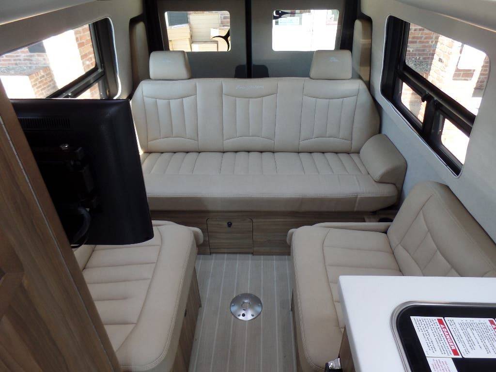 3500 Series Mercedes Sprinter Van w/Unibody Construction • Mercedes 3.0 Liter Turbo V-6 Diesel – 188 hp @3800 RMM, /325 ft/lb@ 140 -2400 RPM • 5-speed Automatic • GVWR 11,030 lb • GCWR 15,250 lb • Traveling Seating Capacity: 9 (EXT Lounge); 7 (EXT Grand Tour) 2 (EXT Grand Tour Twin) • 170” Wheelbase • Rear Window Defrosters • 50 State Emissions • 24.6 Gallon Fuel Tank • Radial Tires • 220 Amp Alternator • Alcoa Dura Bright Aluminum Wheels • Full Size Spare Tire w/Crank Down Winch • Maintenance Free Chassis Battery • Push Button Battery Assist • Vertical Weight Limit of Hitch – 500 lbs • Typical Tow Capacity – 4,200 lbs – 5,000 lbs • Hitch Receiver and Wiring • 74 ¼” Interior Head Room • 70” Interior Width @ Floor • 24′ 4.5″ Exterior Length • Call Colonial RV For the Best Price 800 265-9019 • 79.7” Exterior Width • 9’ 7” Exterior Height w/Antenna • Locking Fuel Fill Door • Body Insulation • Bi-Xenon Headlights • Headlight Washer System • Headlight High Beam Assist • Parktronic – Audio and Visual Front & Rear Parking Assist • Lane Keeping Assist • Collision Prevention Assist • Blind Spot Assist • Rearview Camera integrated in Third Brake Light, Side View Cameras integrated in Side Mirrors, Rear View OE Style Monitor with Rear and Side Views with Back-up and Lane Assist Guide Lines • Child Tethers (Mid-Captains Chair(s) EXT Lounge).