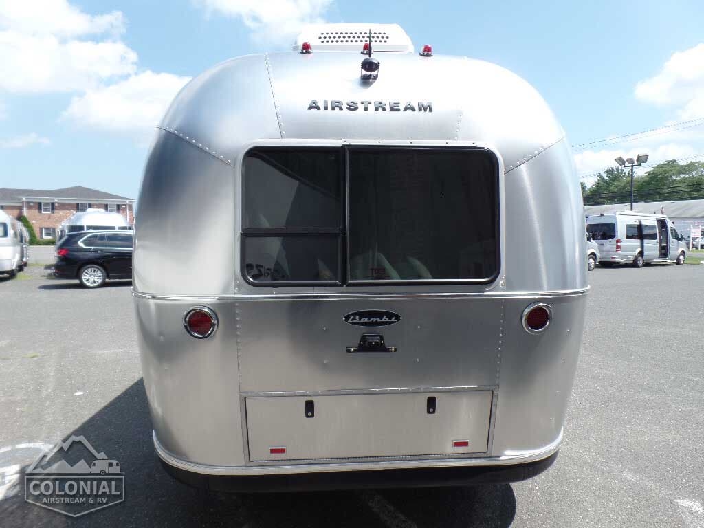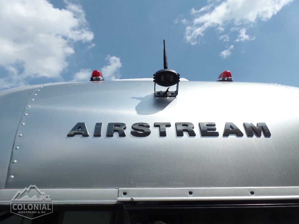 Bright Aluminum Finish – White Aluminum Finish on Roof • Sport Medallion • Bambi Medallion • Chrome Beltline & Rub-Rail Inserts • License Plate Bracket w/Light • Grab Handle – Cast Aluminum • Enclosed & Insulated Underbelly & Tanks • Colonial Airstream • C.S. & R.S. Awning Rails • Light Grey C.S. Patio Awning • Main Door • 3 pc. Solar Stone Guard • Coach Guard Wrap Protectors • Aluminum LP Bottle Cover • LED Taillights w/Chrome Bezel – 4” Round • Exterior Shower • Exterior LP Service Port w/Quick Connect Hose & Adapter Fitting • Roof mounted “plug & play” solar pre-wire • Portable Solar Plug- Mounted on A-frame • Wireless Backup/Driving Camera System W/Monitor.