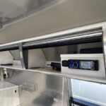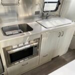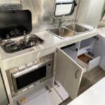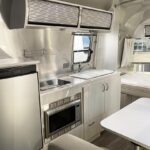 Laminated Galley Top • Aluminum Inserts on Refrigerator • Galley Overhead Rooflocker w/Tambour Doors • Full Height Road Side Storage Cabinet • Fixed Dinette 40” X 74” (16RB); U-Dinette 74.5″ X 38” (22FB) • Colonial Airstream • Stainless Steel Sink w/Cover • Decorative Throw Pillows • Cutlery Drawer w/Hardwood Maple Drawer Organizer • Stainless Steel Galley Sink (Double on 22FB) With Separate Faucet and Cover • Front Panoramic Black Out Curtains.