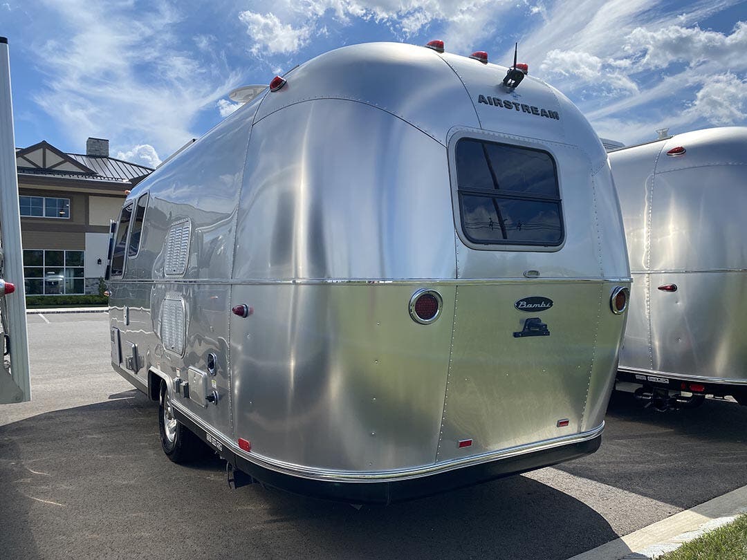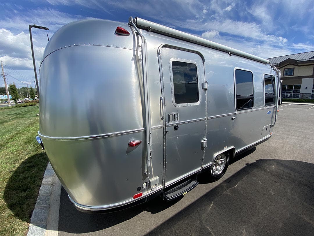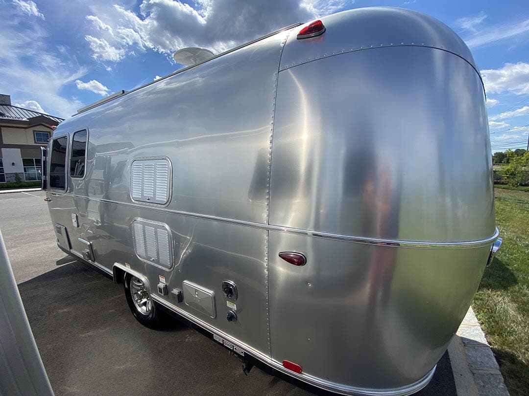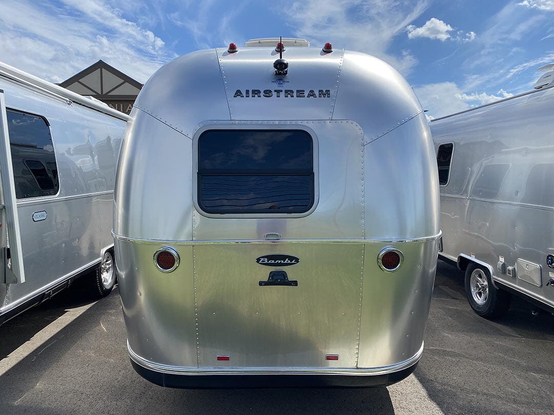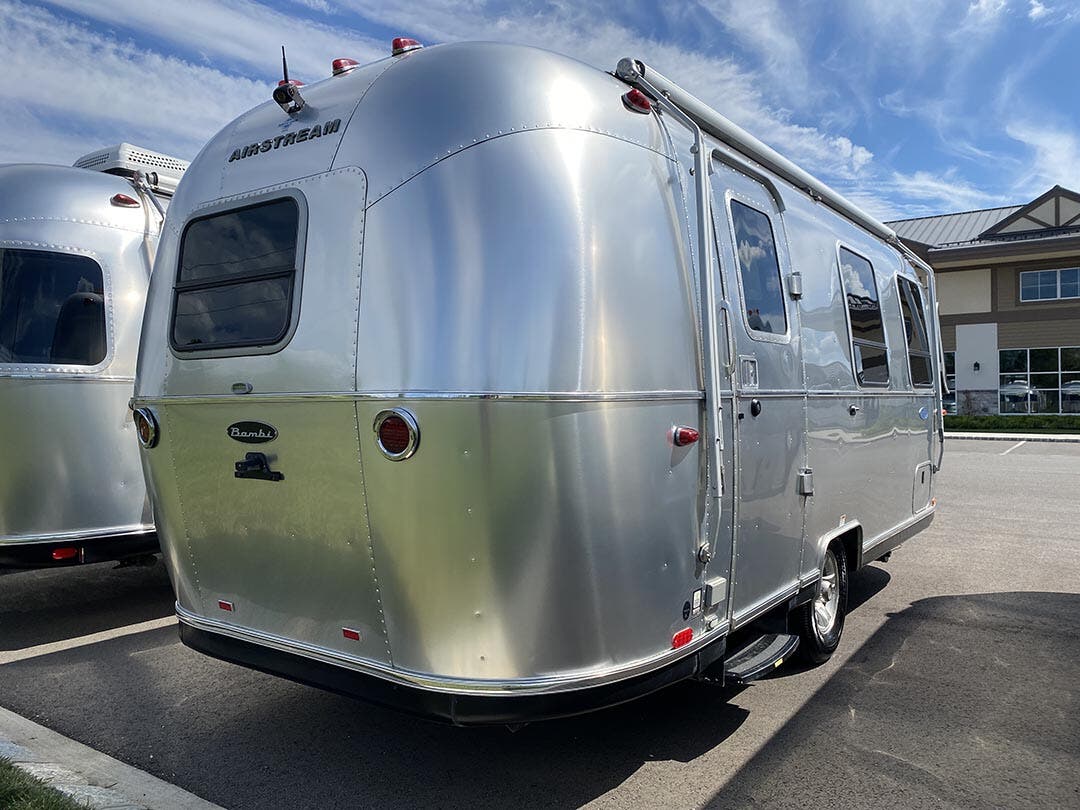 Bright Aluminum Finish – White Aluminum Finish on Roof • Sport Medallion • Bambi Medallion • Chrome Beltline & Rub-Rail Inserts • License Plate Bracket w/Light • Grab Handle – Cast Aluminum • Enclosed & Insulated Underbelly & Tanks • Colonial Airstream • C.S. & R.S. Awning Rails • Light Grey C.S. Patio Awning • Main Door • 3 pc. Solar Stone Guard • Coach Guard Wrap Protectors • Aluminum LP Bottle Cover • LED Taillights w/Chrome Bezel – 4” Round • Exterior Shower • Exterior LP Service Port w/Quick Connect Hose & Adapter Fitting • Roof mounted “plug & play” solar pre-wire • Portable Solar Plug- Mounted on A-frame • Wireless Backup/Driving Camera System W/Monitor.