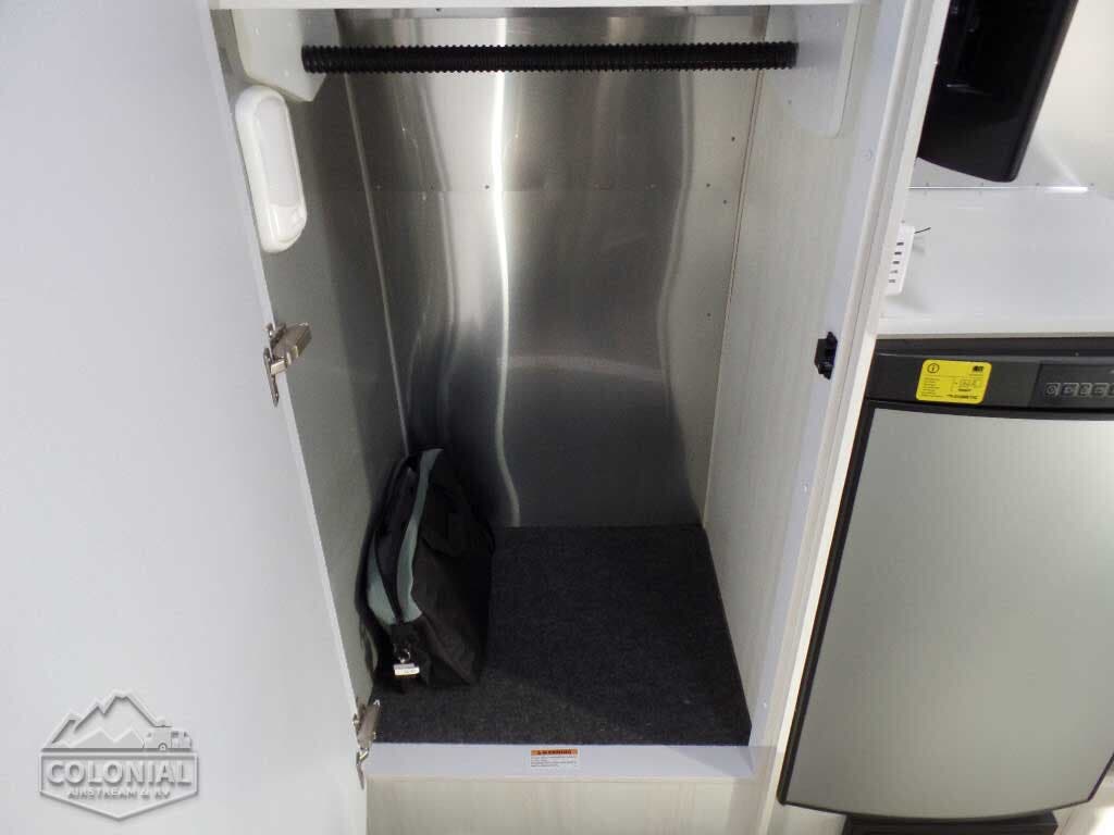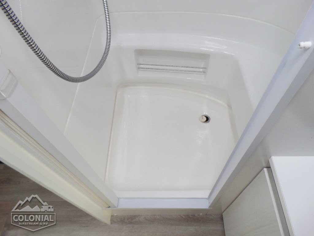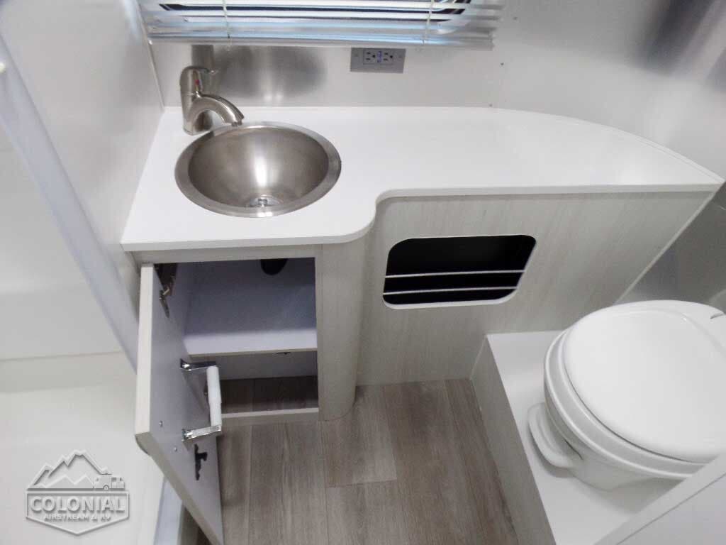 2 – 20 lb. LP Steel Bottles • Automatic 2-Stage Regulator • Water Pump • Water Heater By-Pass Kit • Lockable Water Fill • Water Pressure Regulator • Shower Head w/Shut-Off • Safety Chain Hook 11,700 lb Rating • Colonial Airstream • No Fuss Tank Flush System • Sewer Hose Storage.