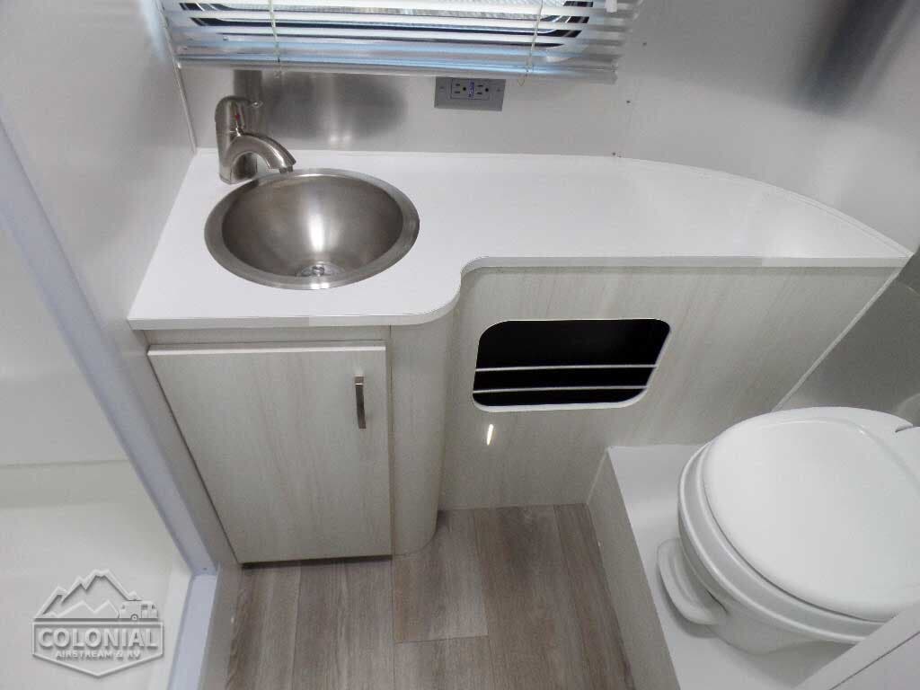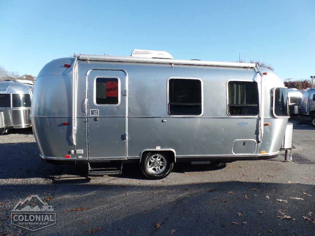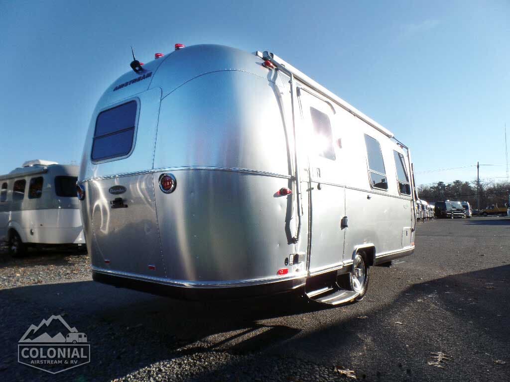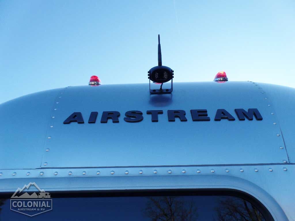 Bright Aluminum Finish – White Aluminum Finish on Roof • Sport Medallion • Bambi Medallion • Chrome Beltline & Rub-Rail Inserts • License Plate Bracket w/Light • Grab Handle – Cast Aluminum • Enclosed & Insulated Underbelly & Tanks • Colonial Airstream • C.S. & R.S. Awning Rails • Light Grey C.S. Patio Awning • Main Door • 3 pc. Solar Stone Guard • Coach Guard Wrap Protectors • Aluminum LP Bottle Cover • LED Taillights w/Chrome Bezel – 4” Round • Exterior Shower • Exterior LP Service Port w/Quick Connect Hose & Adapter Fitting • Roof mounted “plug & play” solar pre-wire • Portable Solar Plug- Mounted on A-frame • Wireless Backup/Driving Camera System W/Monitor.