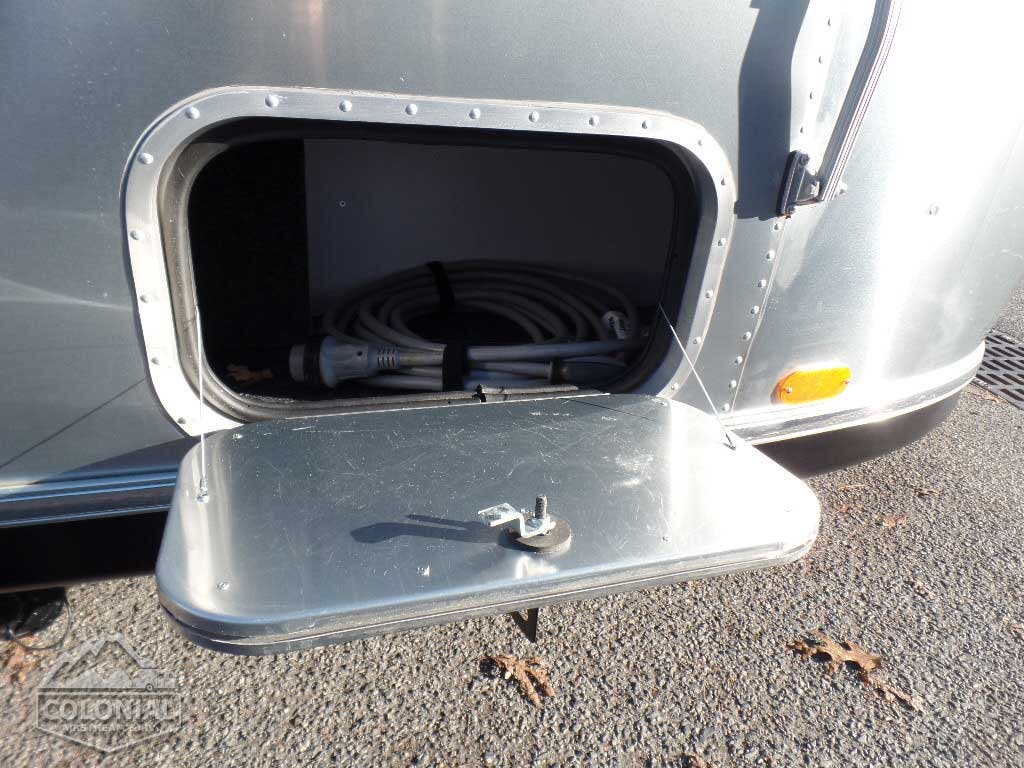 AM/FM/DVD/CD W/Bluetooth Ability And Microphone• 2 Speakers • Radio Antenna • 22″ LED HDTV & articulating arm. ELECTRICAL Deep Cycle Coach Group 24 Battery (1) • 7-Way Trailer Cord w/Junction Box • 110 volt AC / 12 volt DC Power Center w/55 amp Converter • 12 volt ATC Fuses • LED Lighting • 120 volt Exterior Outlet • Colonial Airstream • GFI Protection for Bath, Galley & Exterior Outlet • LED Step Light • LED Dump Valve Light • Water Pump Switch • Manual Battery Disconnect • Solar Prewire • 30 amp Service Detachable Power Cord • 3 USB Charge Stations.