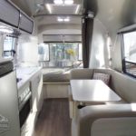 Brushed Aluminum Mini Blinds • Full Close-Out Drapes at Panoramic & Bedroom Windows • Laminate Furniture & Countertops • Bright Aluminum Finish Interior Skin • Seamless Vinyl Flooring Throughout • Colonial Airstream • Overhead Roof Lockers w/Tambour Doors • Interior Grab Handle • Entrance Mat w/ Airstream Logo • Coat Hooks • Information Board • LED Lighting • Ultraleather Seating.