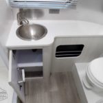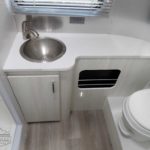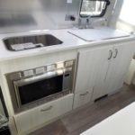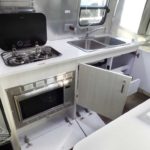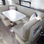 Laminated Galley Top • Aluminum Inserts on Refrigerator • Galley Overhead Rooflocker w/Tambour Doors • Full Height Road Side Storage Cabinet • Fixed Dinette 40” X 74” (16RB); U-Dinette 74.5″ X 38” (22FB) • Colonial Airstream • Stainless Steel Sink w/Cover • Decorative Throw Pillows • Cutlery Drawer w/Hardwood Maple Drawer Organizer • Stainless Steel Galley Sink (Double on 22FB) With Separate Faucet and Cover • Front Panoramic Black Out Curtains.