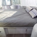 Pillow Top Memory Foam Mattress • Quilted Bedspread w/Reverse Sham, Decorative Throw Pillows & 2 Regular Bed Pillows • Overhead Roof Locker at Bedroom w/Tambour Doors • Colonial Airstream • Removable Under Bed Storage Bins • Sleeping Capacity: 2 – 3 (16RB); 2 – 4 (22FB) • Lift-Up Storage Access Under Bed (22FB).